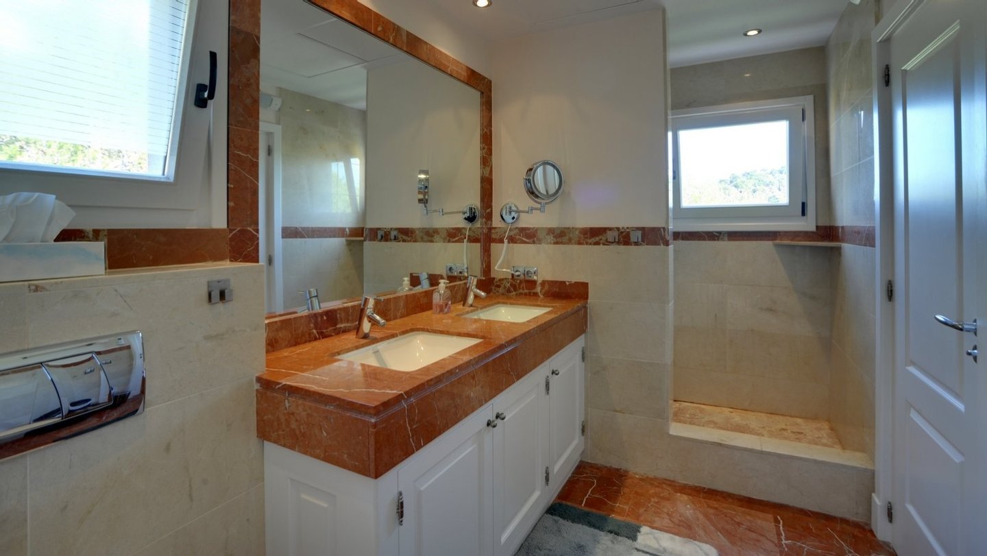 Die wunderschöne Immobilie wurde auf einem 1.600 m² großen Grundstück erbaut und verfügt auf diesem über einen terrassenförmig, wunderschön angelegten mediterranen Garten, mehrere offene und überdachte Terrassen sowie einen privaten Pool mit traumhaftem Ausblick auf das Meer. Die bebaute Fläche von 300 m² unterteilt sich in ein großzügiges Wohn- und Esszimmer mit Kamin, sowie eine hochmoderne offene Einbauküche, 3 Schlafzimmer, 3 Badezimmer, Gästetoilette, Abstellraum und Garage. Außerdem profitiert die von Marmorfußböden, Klimaanlage warm / kalt und Fußbodenheizung. Hier sind sowohl moderne, als auch mediterrane Charakterzüge vereint, durch die schöne Natursteinverkleidung und der hohen Decken im Wohn-Esszimmer, sowie einem modernen Design. Genießen Sie den schönen Panorama-Meerblick von Ihren Terrassenbereichen. Der angelegte Garten um die Villa bietet Privatsphäre pur.