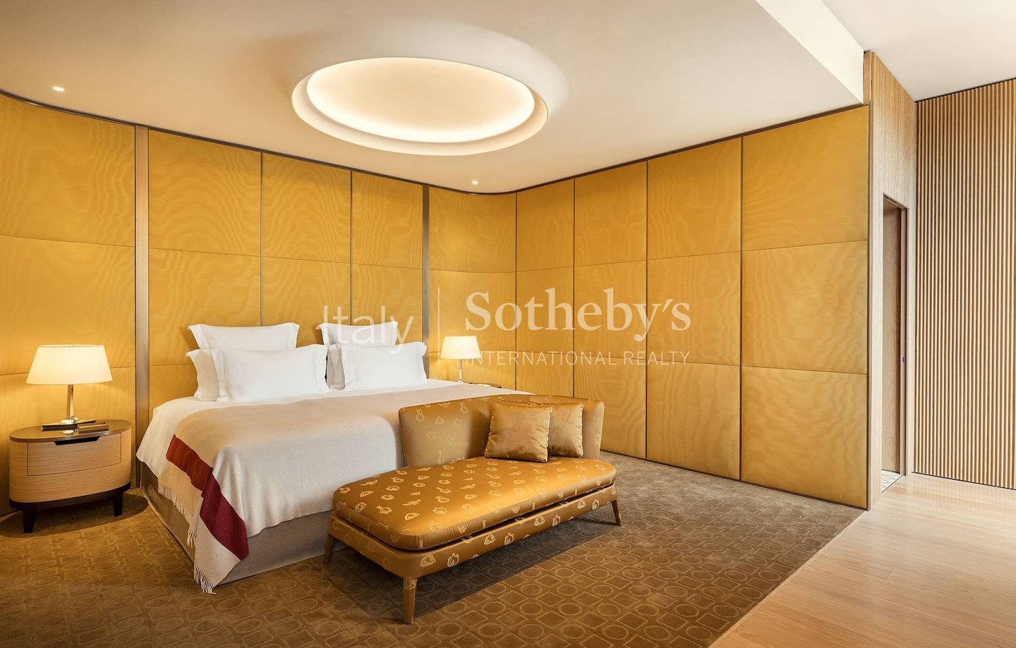 Mit einer Fläche von 300 m² (984,252 sq.ft) bietet diese kaiserliche Residenz Möbel, die von Antonio Citterio entworfen wurden, und maßgeschneiderte Wandstoffe von Rubelli, der historischen venezianischen Marke.