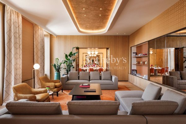 Mit einer Fläche von 300 m² (984,252 sq.ft) bietet diese kaiserliche Residenz Möbel, die von Antonio Citterio entworfen wurden, und maßgeschneiderte Wandstoffe von Rubelli, der historischen venezianischen Marke.