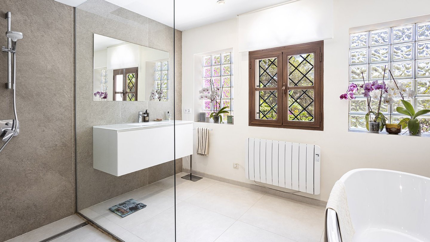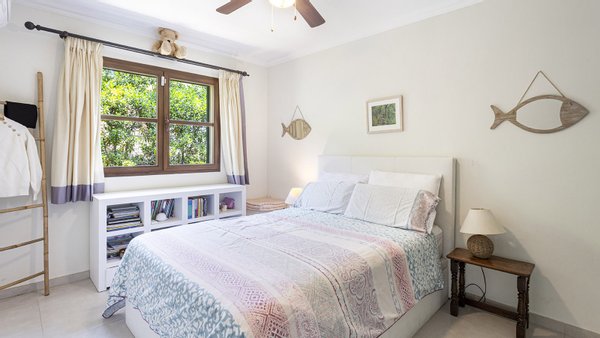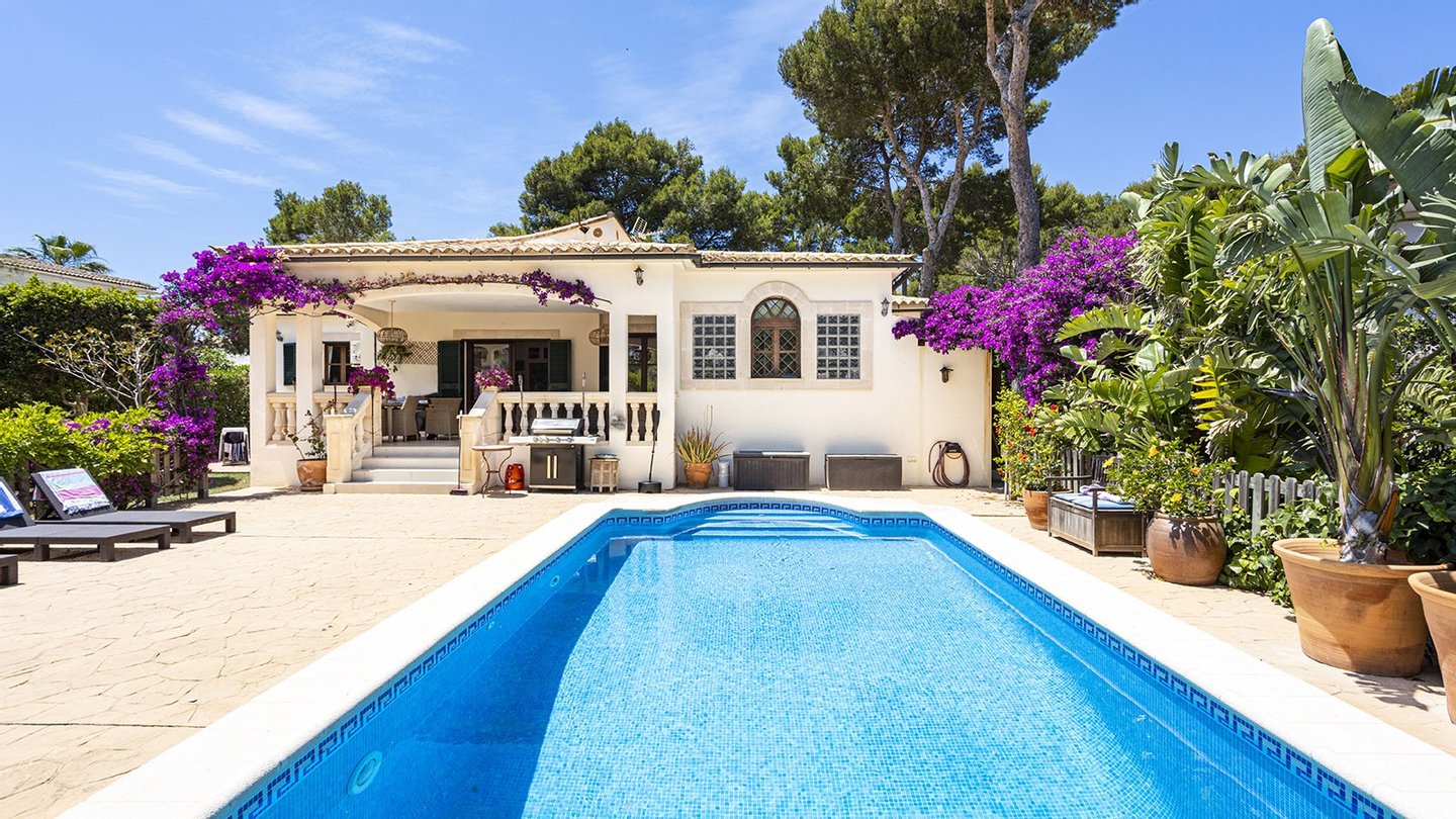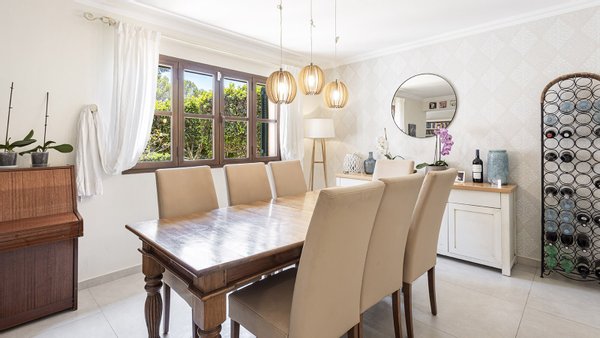Die Mallorca Immobilie liegt auf einem ca. 1.130 m2 großen Grundstück und wurde im Jahr 2019 renoviert. Die bebaute Fläche beträgt ca. 207 m2 und teilt sich wie folgt auf: helles Wohn-Esszimmer mit Kamin, voll ausgestattete Einbauküche mit Elektrogeräten der Marke Neff, 4 Doppelschlafzimmer, 2 Bäder (eines davon en suite), Ankleidezimmer, Büro, Hauswirtschaftsraum sowie ein Kellerraum. Im Außenbereich wurde ein mediterraner Garten mit automatischer Bewässerung, Grillplatz und Swimmingpool angelegt, umgeben von Sonnenterrassen. Sehr schöne offene und überdachte Terrassen runden das Wohn- und Urlaubsgefühl ab. Zur Ausstattung gehören Gaszentralheizung, Klimaanlage warm/kalt, doppelverglaste PVC-Fenster, Fliesenböden, Videoalarmanlage, Telefonanschluss und SAT-TV. Ein Parkplatz mit elektrischem Tor steht Ihnen ebenfalls zur Verfügung.