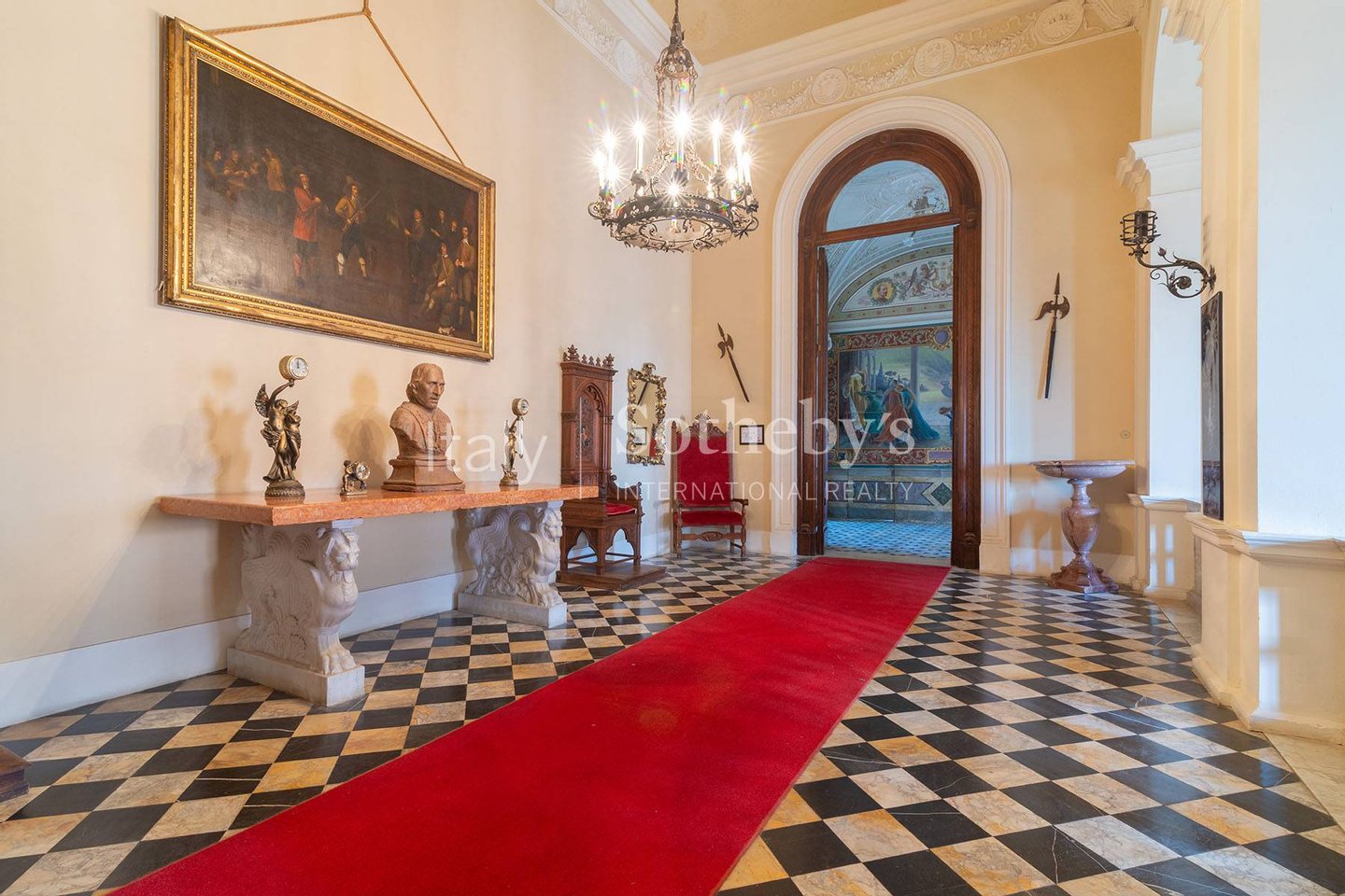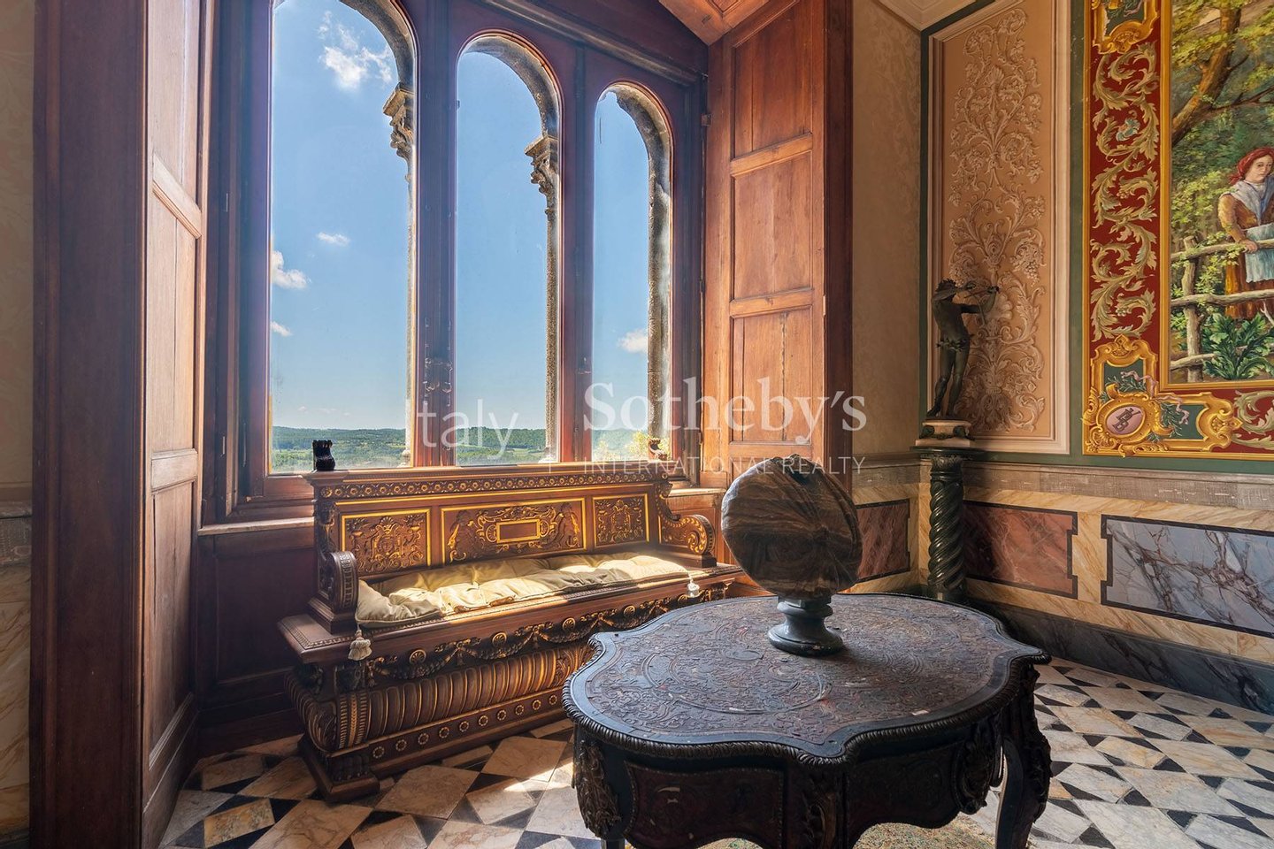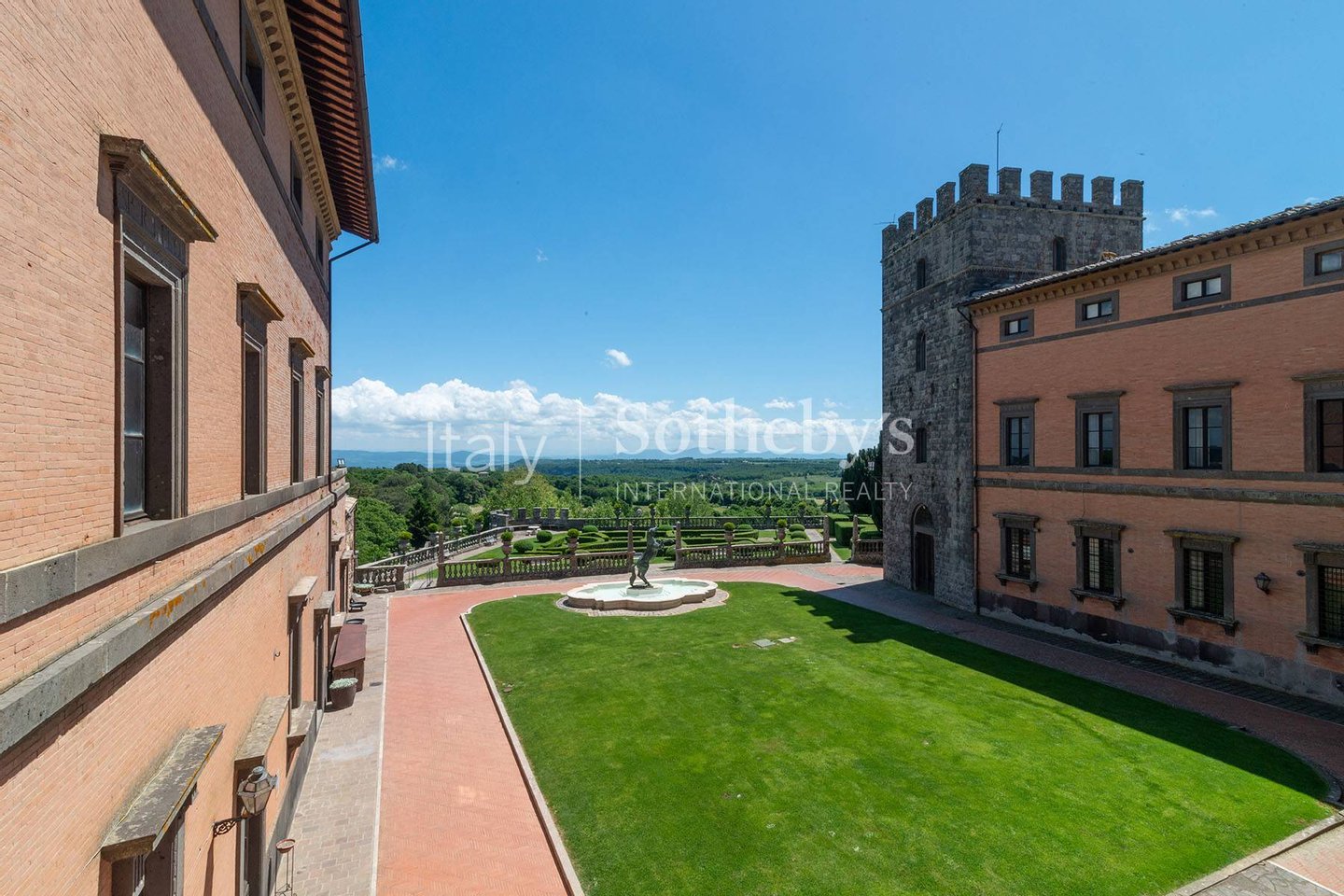 Im malerischen Dorf Torre Alfina, ein Juwel eingebettet in der Provinz Viterbo, steht ein Denkmal von unvergleichlicher Schönheit und Geschichte: ein mittelalterliches Schloss mit 5000 qm Innenfläche (53819 sq.ft), verteilt auf 5 Ebenen, und 1000 qm (10,764 sq.ft) üppigem privatem Garten. Dieses majestätische Schloss blickt auf eine Geschichte zurück, die ihre Wurzeln bis ins frühe Mittelalter und bis ins 20. Jahrhundert zurückverfolgt, und spiegelt die sich entwickelnden architektonischen Trends und soziokulturellen Veränderungen wider, die es durchlaufen hat. Ursprünglich eine hochmittelalterliche Befestigungsanlage der Familie Monaldeschi della Cervara aus dem 8. Jahrhundert, erfuhr es bedeutende Veränderungen unter Sforza Monaldeschi während der Renaissance. Seine radikalste Verwandlung fand 1880 statt, als es von Graf Edoardo Cahen d'Anvers erworben wurde, der den Architekten Giuseppe Partini und die Gärtner Henri und Achille Duchêne beauftragte, das Schloss in einem erneuerten mittelalterlichen Stil umzugestalten.