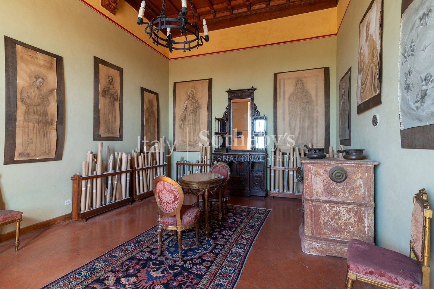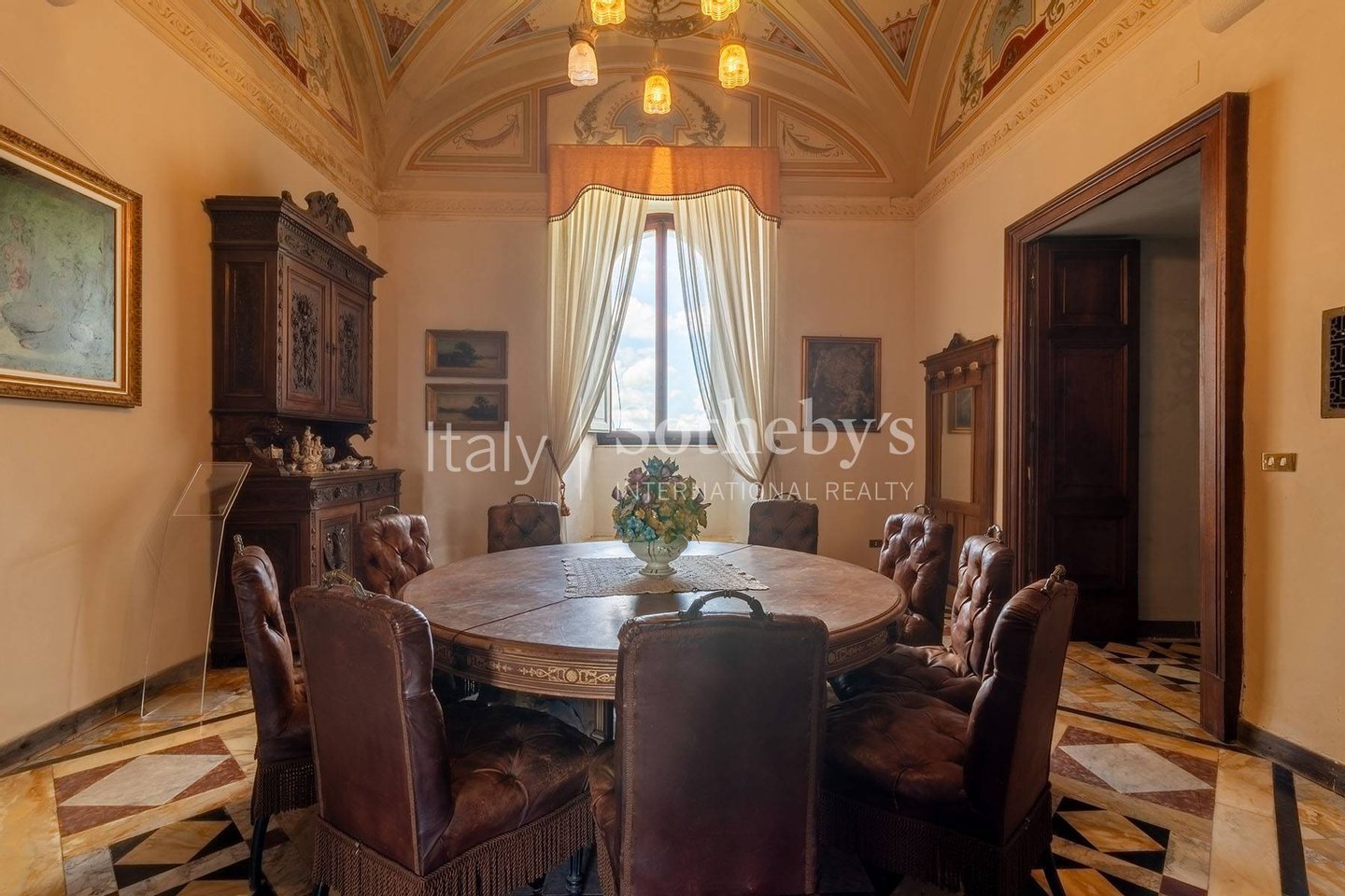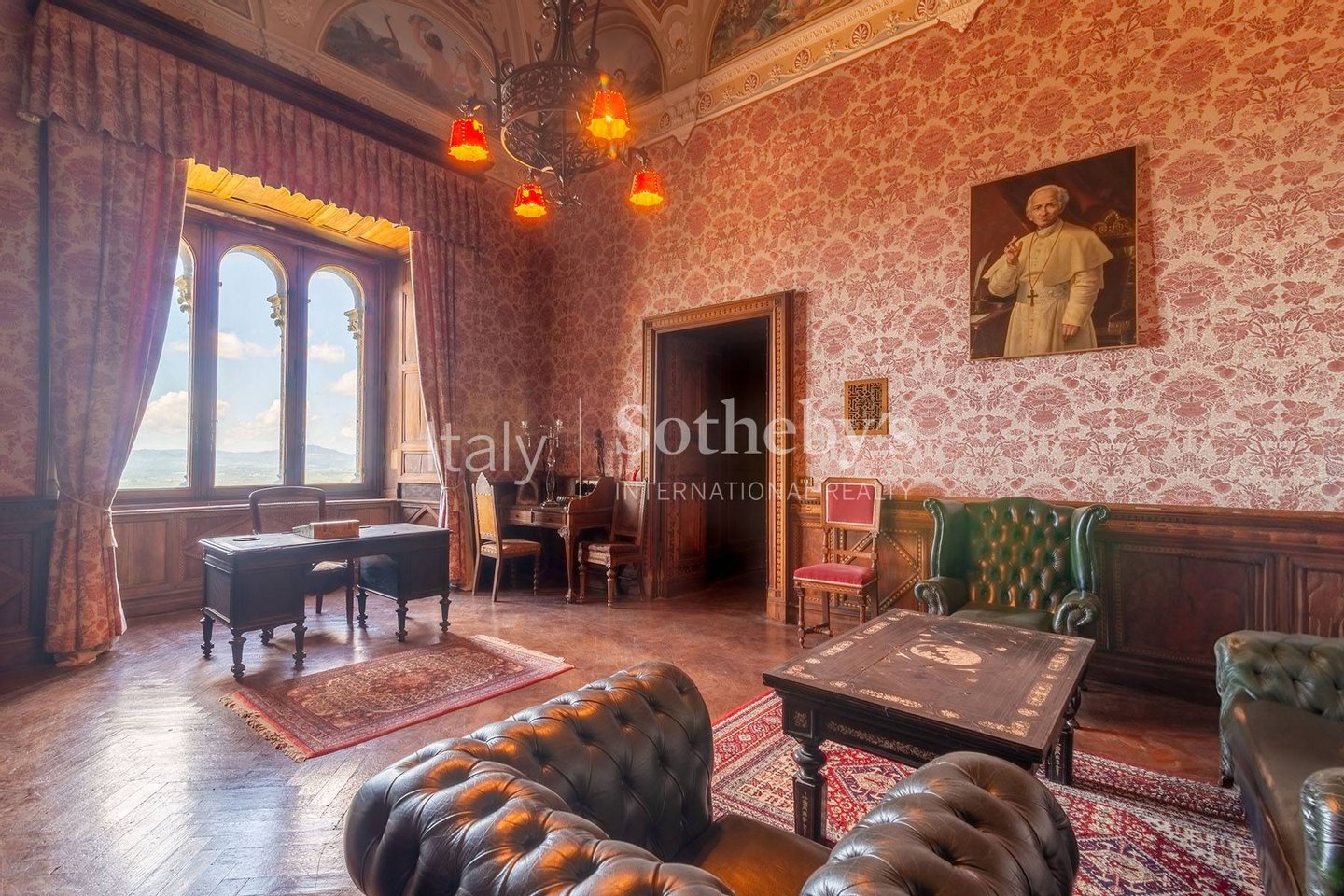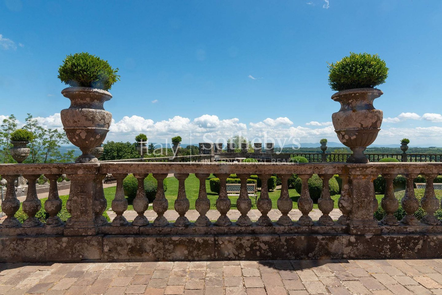 Diese wunderbare Immobilie bietet 35 Zimmer. Das Erdgeschoss des Schlosses verfügt über eine imposante Galerie, die mit freskengeschmückten Wänden, gewölbten Decken mit Holzintarsien, Statuen und Marmorböden verziert ist. Hier kann man durch große Fenster mit Rundbogenrahmen einen weiten Blick auf das darunterliegende Dorf und die grüne Landschaft von Latium genießen. Das obere Stockwerk, das piano nobile, besteht aus einer geräumigen und malerischen Galerie, mehr als 10 Zimmern, einem Speisesaal, mehreren Empfangsräumen und einer Bibliothek mit Holzböden. Der zweite Stock beherbergt die Dachgeschossräume, die fast ausschließlich aus einem Schlafbereich mit mehreren Schlafzimmern sowie Dachzimmern, Schränken und Lagerräumen bestehen. Die Innenräume der fünf Türme beherbergen wunderschöne Zimmer mit Panoramablick.