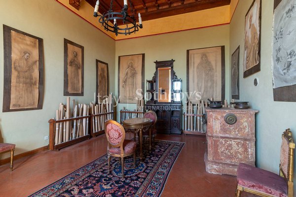 Im malerischen Dorf Torre Alfina, ein Juwel eingebettet in der Provinz Viterbo, steht ein Denkmal von unvergleichlicher Schönheit und Geschichte: ein mittelalterliches Schloss mit 5000 qm Innenfläche (53819 sq.ft), verteilt auf 5 Ebenen, und 1000 qm (10,764 sq.ft) üppigem privatem Garten. Dieses majestätische Schloss blickt auf eine Geschichte zurück, die ihre Wurzeln bis ins frühe Mittelalter und bis ins 20. Jahrhundert zurückverfolgt, und spiegelt die sich entwickelnden architektonischen Trends und soziokulturellen Veränderungen wider, die es durchlaufen hat. Ursprünglich eine hochmittelalterliche Befestigungsanlage der Familie Monaldeschi della Cervara aus dem 8. Jahrhundert, erfuhr es bedeutende Veränderungen unter Sforza Monaldeschi während der Renaissance. Seine radikalste Verwandlung fand 1880 statt, als es von Graf Edoardo Cahen d'Anvers erworben wurde, der den Architekten Giuseppe Partini und die Gärtner Henri und Achille Duchêne beauftragte, das Schloss in einem erneuerten mittelalterlichen Stil umzugestalten.