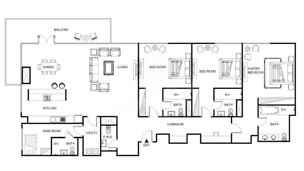 Willkommen in Ihrem luxuriösen Apartment mit 4 Schlafzimmern im Bluewaters Residences-Gebäude 6. Jedes Schlafzimmer verfügt über ein eigenes Bad, sodass Sie in Ruhe entspannen können. Das Dienstmädchenzimmer sorgt für zusätzliche Bequemlichkeit und