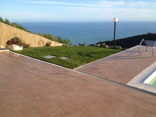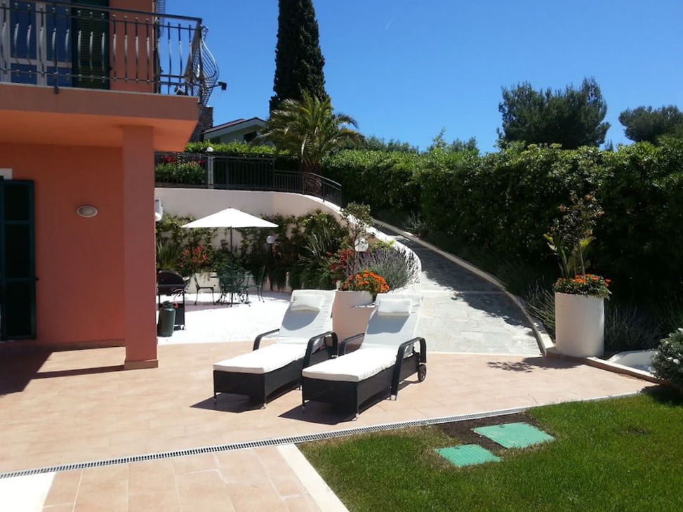 Im Garten befindet sich ein großer Infinity-Pool, um sich in den warmen Sommermonaten abzukühlen. Auf der geräumigen großen Terrasse befindet sich ein großer Granittisch, um das "La Dolce Vita Italiana" zu genießen
