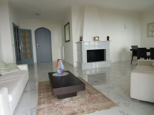 * Im zweiten Stock befindet sich das große Wohnzimmer mit Kamin, herrlichem Meerblick und 2 Schlafzimmern mit eigenem Bad.