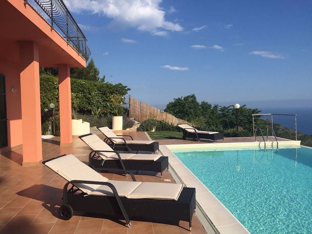 In Camporosso haben wir diese wunderschöne Luxusvilla zum Verkauf 264 m² mit atemberaubendem Blick über das Mittelmeer, die Seealpen, Monaco und die französischen Kappen.