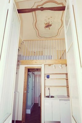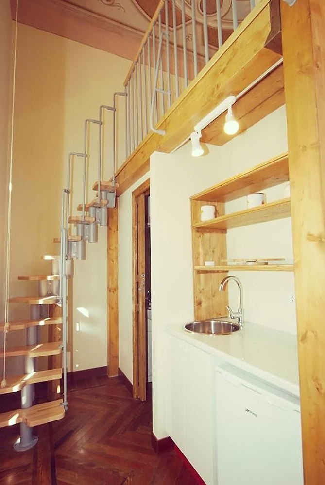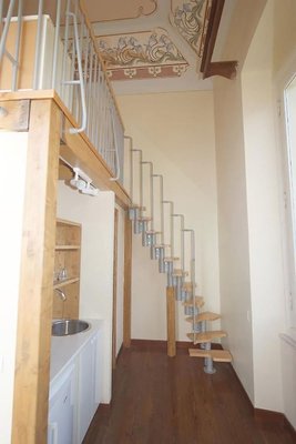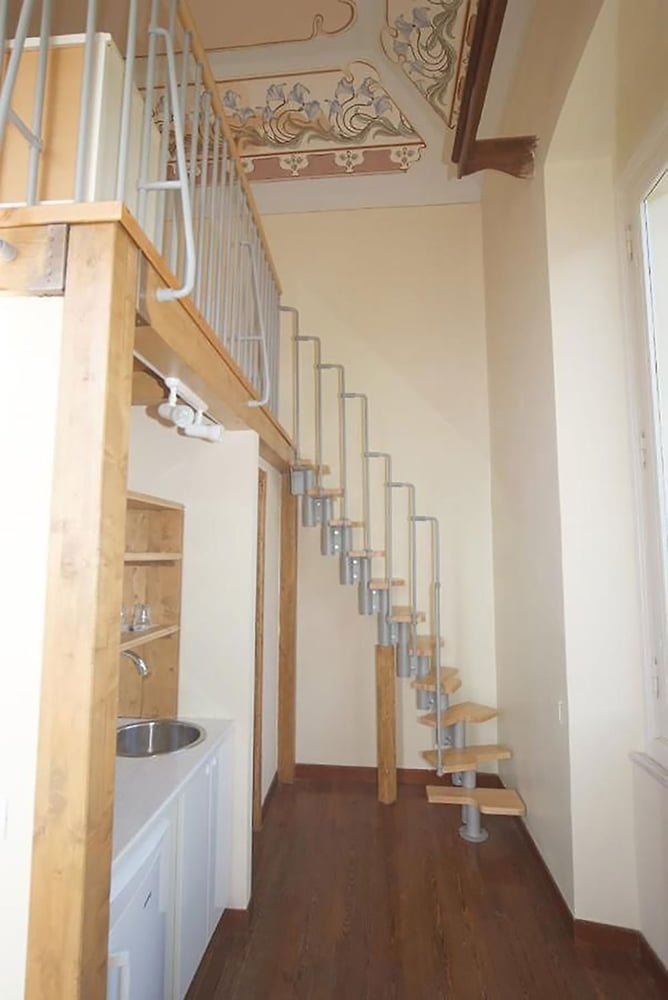 Im ersten Stock befinden sich ein Flur, 4 Wohnungen, 3 mit Bad, 3 Gemeinschaftstoiletten und der Aufzug. Jede Wohnung verfügt über einen Dachboden, der zusätzlichen Platz schafft.