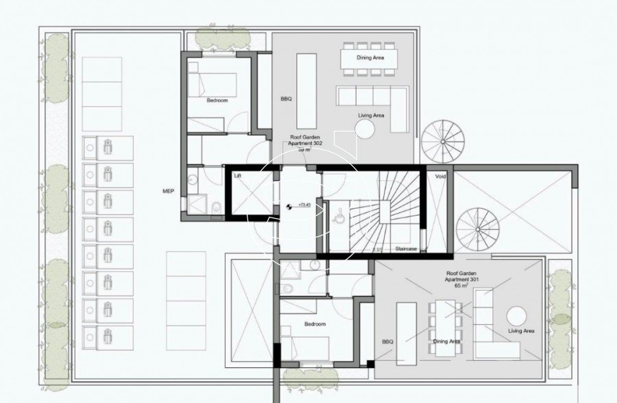 Die acht exklusiven Wohnungen in Germasogeia, Limassol, bestehen aus 2 Ein-Zimmer-, 6 Zwei-Zimmer-Wohnungen und zwei maßgeschneiderten Penthäusern, die jeweils über einen nach Süden ausgerichteten Dachgarten und ein Tageszimmer mit Dusche verfügen.