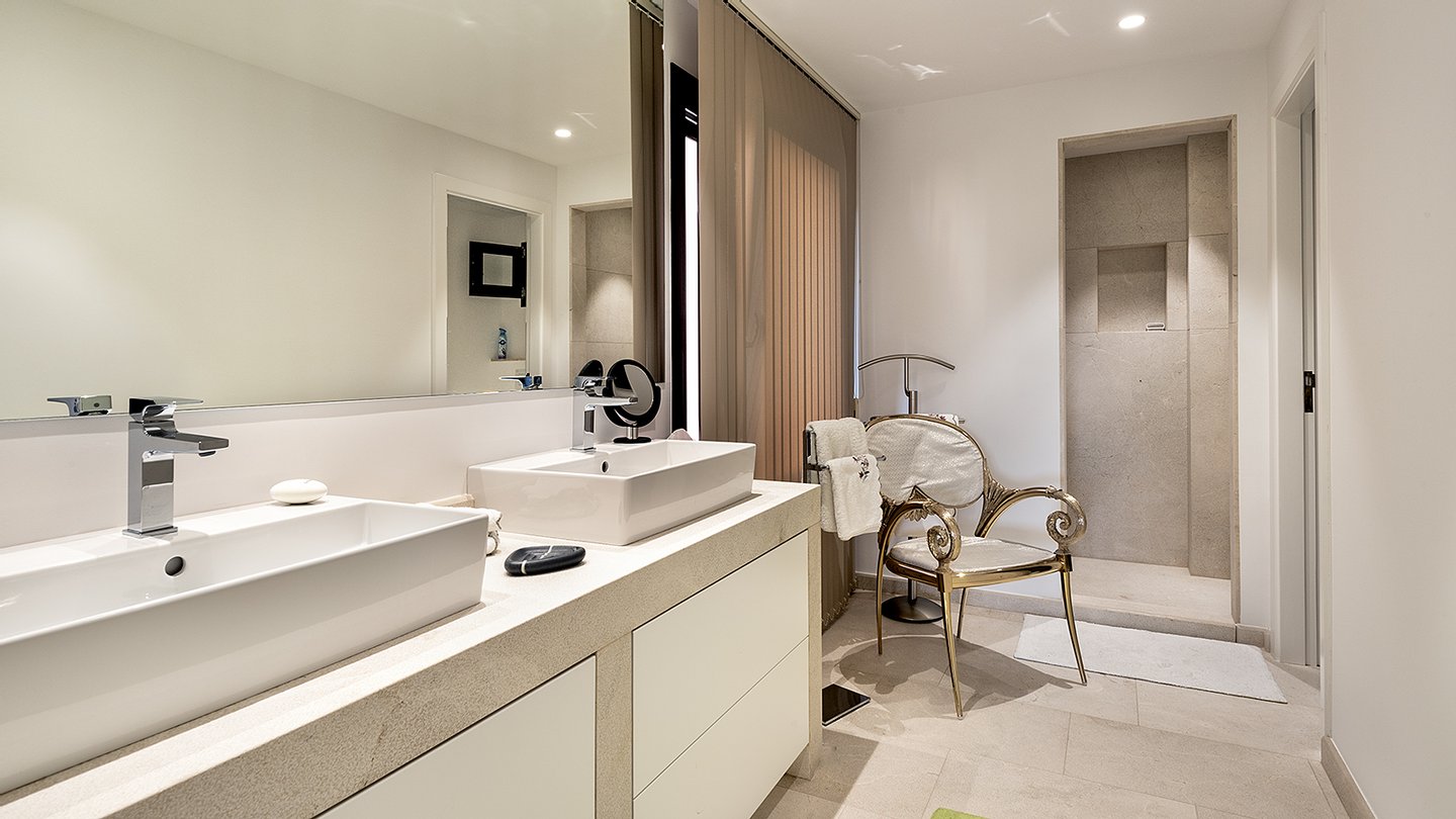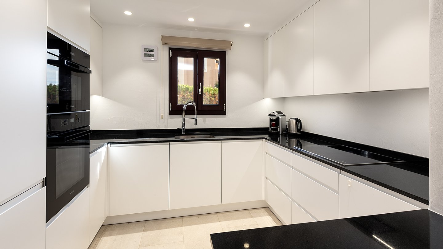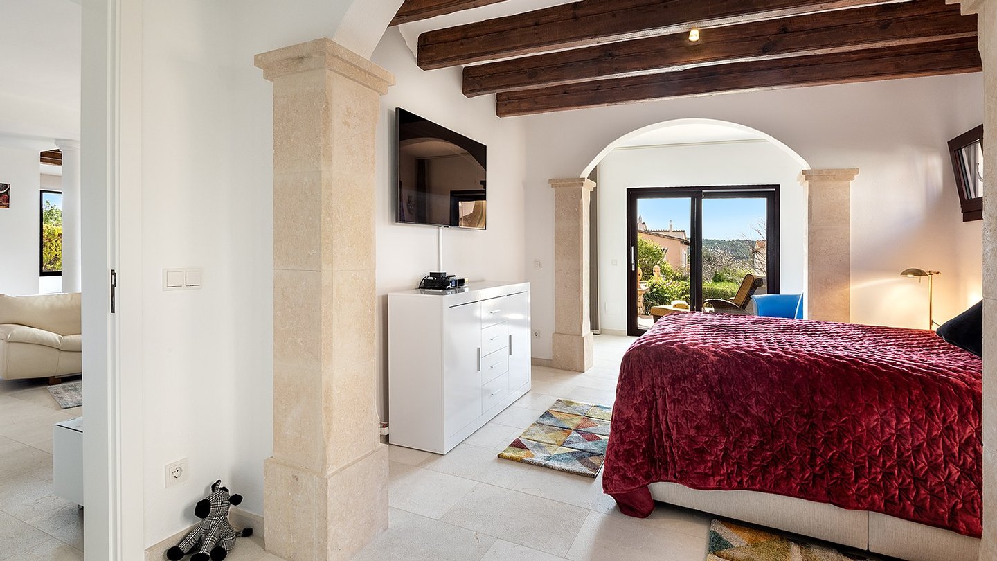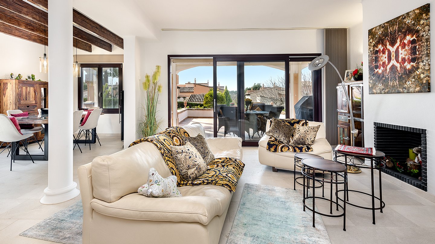 Mallorca Immobilien: Dieses elegante Erdgeschossapartment befindet sich in einer beliebten Golfresidenz direkt am Golfplatz von Santa Ponsa im Südwesten von Mallorca. Die Immobilie wurde mit viel Liebe zum Detail dekoriert und umfangreich renoviert.Die moderne Innenausstattung, die großzügige Raumaufteilung auf einer Ebene und ein eigener Garten zeichnen diese Mallorca Immobilie aus. Auf einer Wohnfläche von ca. 210 m2 verteilen sich 3 Schlafzimmer, Ankleide, 3 Bäder (2 davon en suite), ein Gäste-WC, ein heller Wohn- Essbereich, eine offene moderne Einbauküche mit Elektrogeräten von Miele, ein Hauswirtschaftsraum und ein Abstellraum. Die Traumimmobilie besticht durch ihre hochwertige Einrichtungsqualität, sowie ein luxuriöses Interieur, die komplett im Kaufpreis enthalten ist. Viel Wohnkomfort wird durch folgende Ausstattungsmerkmale geboten: Fußbodenheizung, Klimaanlage w/k, ein Kamin, doppelt verglaste Aluminiumfenster mit Blenden, teilweise Natursteinböden, SAT TV, Einbauschränke, edler Weinschrank (vinoteca), Videoüberwachung, Holzbalkendecken und vieles mehr. Eine Garage mit direktem Zugang zum Apartment, sowie ein Stellplatz komplettieren diese Immobilie. Zusätzlich ist ein Mercdes GLA-200d mit spanischen Kennzeichen im Preis enthalten. Die ruhige und unverbaubare Lage zeichnet diese exklusive und private Golfresidenz aus. Die Anlage bietet den Eigentümern einen großen Gemeinschaftspool umrandet von mehreren Sonnenterrassen.Das Stadtzentrum von Santa Ponsa ist nur wenige Minuten entfernt. Es ist ein beliebter Treffpunkt für ein internationales Publikum. Dank der Lage im Südwesten Mallorcas bietet Santa Ponsa Touristen und Dauerbewohnern das ganze Jahr über alles, was sie brauchen. Es gibt mehrere Golfplätze, viele Yachthäfen, internationale Schulen, Restaurants und Bars. Ein großer Vorteil ist die Nähe zur Hauptstadt Palma und zum internationalen Flughafen, die Sie mit dem Auto in nur etwa 25 Minuten erreichen.