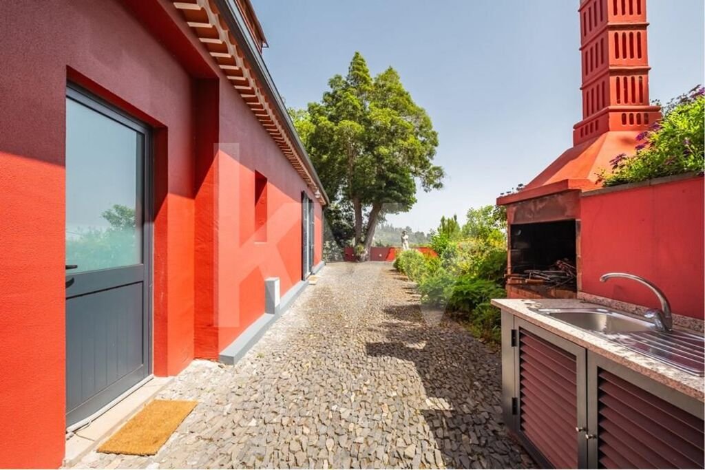Ich präsentiere Ihnen hier eine außergewöhnliche Gelegenheit, eine der exklusivsten Immobilien auf der Insel Madeira und in Funchal zu erwerben.Inmitten einer üppigen Vegetation aus Bäumen und Blumen gelegen, hat dieses Anwesen eine Gesamtfläche von 12.675 m2 und bietet einen absolut atemberaubenden Blick über die Stadt Funchal und den Atlantik dahinter. Das Anwesen verfügt über eine Kapelle, ein traditionelles Haus aus den Anfängen des Anwesens sowie ein sehr modernes Haupthaus mit allen Annehmlichkeiten des 20. JahrhundertsHaupthaus im Überblick:Auf einer Fläche von 544 m2 zeigt dieses Projekt zeitgenössische Architektur und umfasst insgesamt 6 Schlafzimmer (1 ensuite), 7 Badezimmer, eine voll ausgestattete Küche, Wohnzimmer und Essbereich . Von der Küche und dem Esszimmer aus haben Sie Zugang zu Terrassen zu separaten Terrassen, auf denen Sie Ihren Tag bei einem Kaffee beginnen und Ihre Gäste mit Funchal und dem Atlantik unter sich unterhalten können. Zum Haupthaus gehören auch ein Hallenbad (derzeit nicht in Betrieb), eine Garage für 2 Autos und ein Kunstatelier mit 500m2, das bei Bedarf in zusätzliche Zimmer/Suiten umgewandelt werden kann. Entworfen von dem bekannten Architekten João Favila Vieira de Sousa Meneses, schmiegt sich dieses neuere Haus in den Berghang und schafft eine einzigartige Kombination aus alten und neuen Gebäuden auf demselben GrundstückDas Haupthaus ist mit allen modernen Annehmlichkeiten wie Klimaanlage, Zentralheizung, Hausautomation, doppelt verglasten Fenstern und großen Fenstern ausgestattet, die einen unvergleichlichen Blick auf das Tal und über das Meer bieten. Ursprüngliches Haus, das jetzt in ein Gästehaus umgewandelt wurde: Ein malerisches Landhaus mit 177 m2 Wohnfläche und besteht aus 3 Schlafzimmern, davon 2 ensuite, und einem zusätzlichen Badezimmer, einem Wohnzimmer mit Holzdecken und einem Kamin für die kühleren Abende. Die Küche im amerikanischen Stil ist komplett ausgestattet und verfügt über eine gemütliche Essecke und eine große Waschküche in der Nähe. Dieses Anwesen aus dem 18. Jahrhundert wurde vollständig restauriert, wobei sein ursprünglicher Charme erhalten blieb. Dieses Haus dient als Ergänzung zum Hauptwohnsitz, der sich am Hang darüber befindet. Die Kapelle von Quinta da Alegria: Diese kleine Kapelle aus dem Jahr 1608 heißt "Capela da Alegria" und gab der ursprünglichen Gasse, die zum Anwesen führte, den Namen. Das gesamte Anwesen ist von Steinmauern umgeben, die den Bewohnern absolute Privatsphäre bieten.
