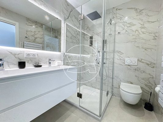 Die Wohnung ist in einem ausgezeichneten Zustand und besteht aus: einem großen, hellen Wohnzimmer mit Zugang zu einer großen Westterrasse, einer offenen Einbauküche, 1 Schlafzimmer mit eigenem Duschbad, Stauraum und Zugang zur Terrasse, einem 2. Schlafzimmer mit eigenem Duschbad und ein drittes Hauptschlafzimmer mit eigenem Bad sowie Dusche und großem Ankleidezimmer. 3 Toiletten, darunter eine Gästetoilette.