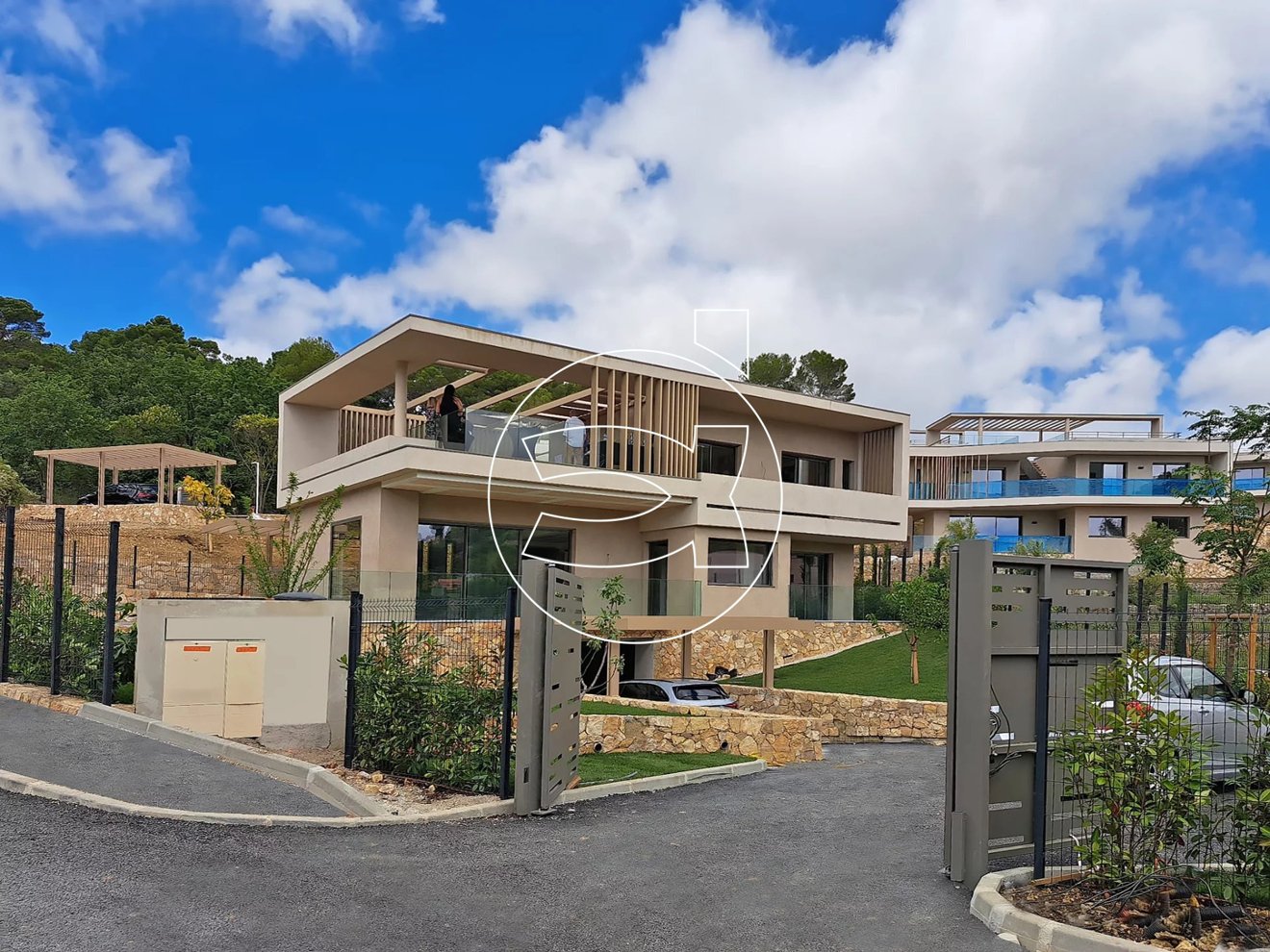 Dieses prächtige Anwesen in Mougins besteht aus 7 Wohnungen und 8 von Architekten entworfenen Villen. Jedes Haus hat eine zeitgenössische Architektur, die in völliger Harmonie mit der umgebenden Natur steht. Das Anwesen ist ein Musterbeispiel an Ruhe, Eleganz und Komfort.