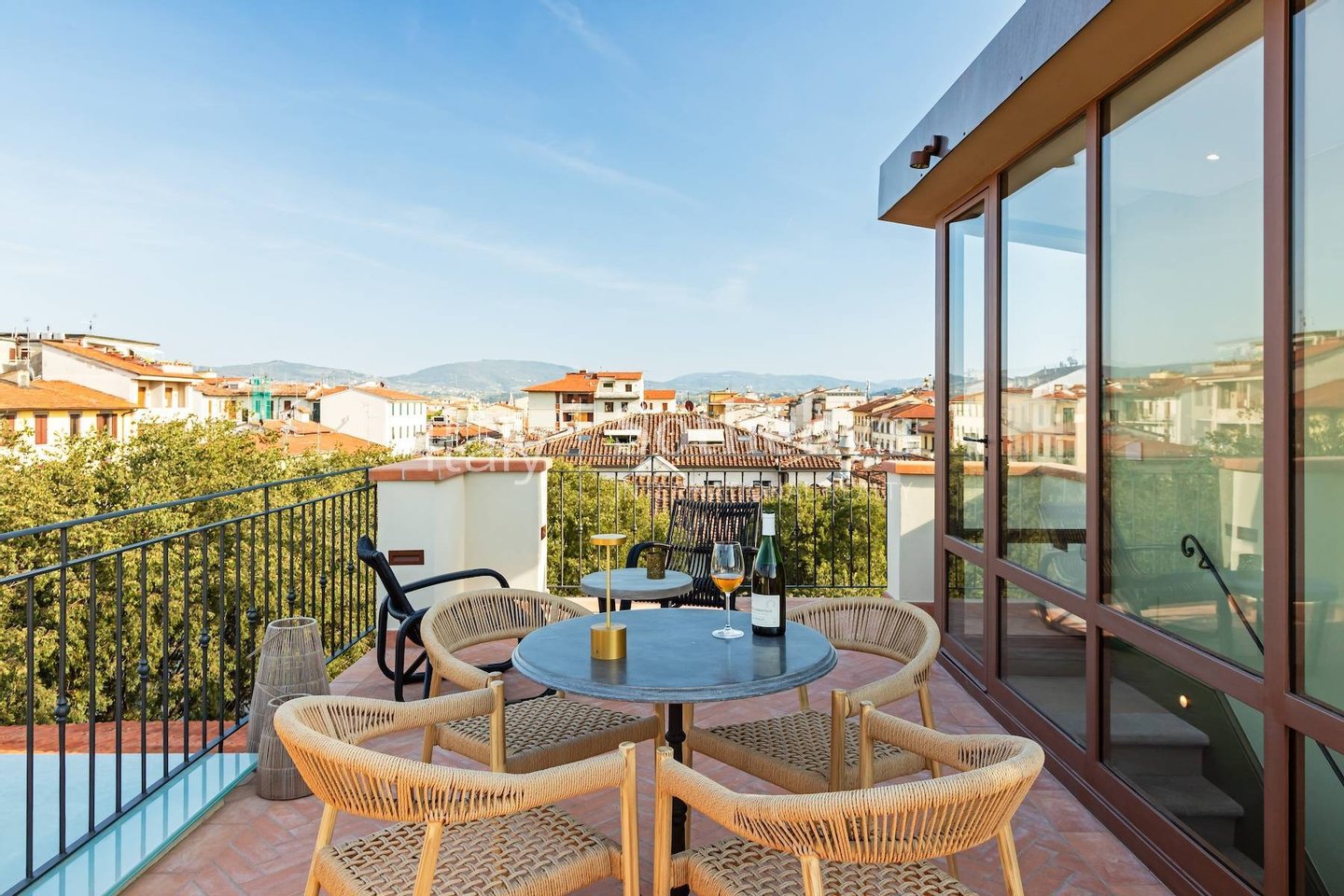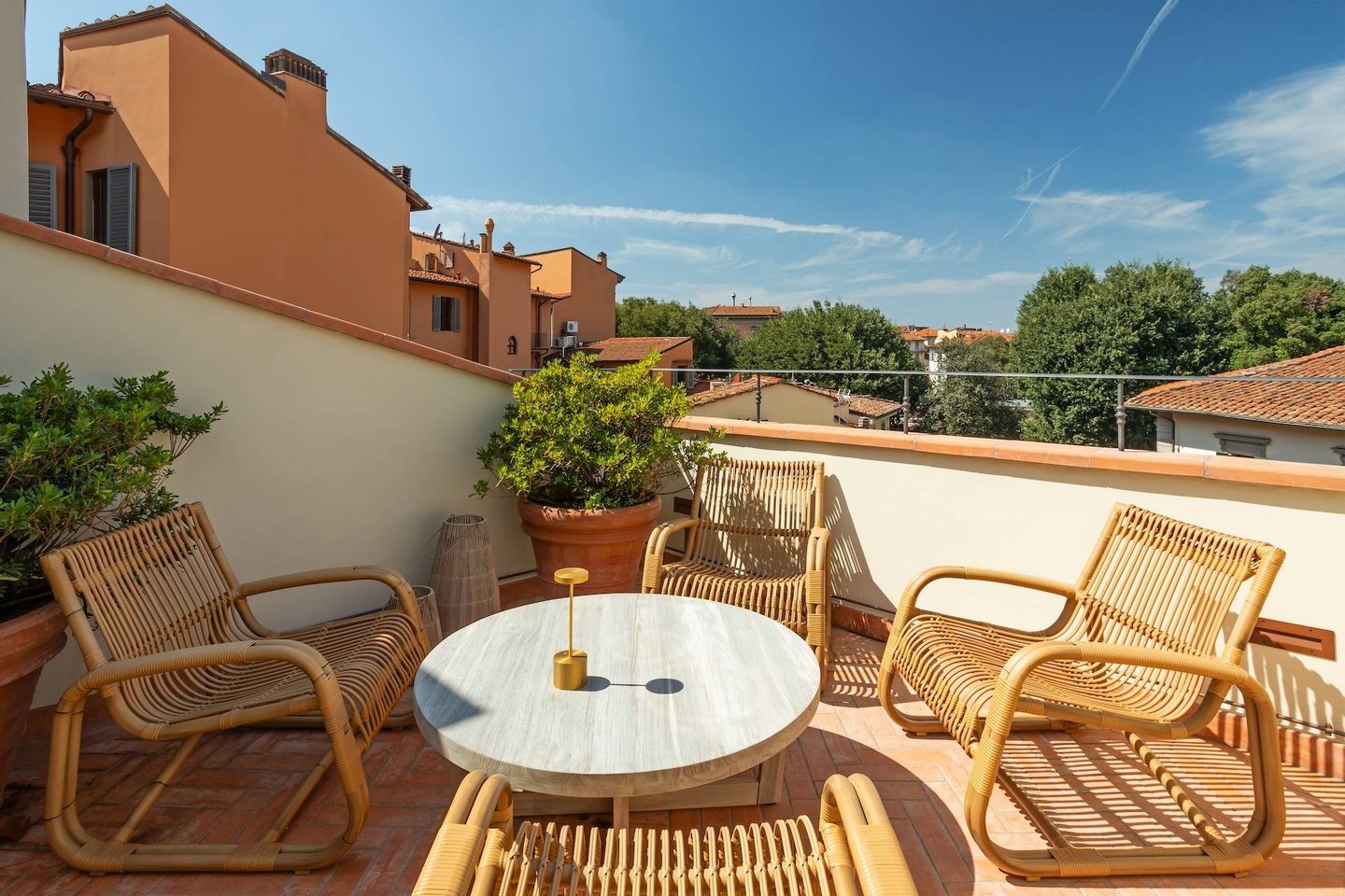 The architecture in this attic residence creates a cosy and intimate space. From the exposed ceiling beams to the corner skylight, here you'll feel very much in your own world, up in the roof and the romance of Florence.
