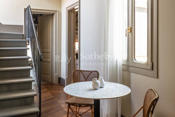 The architecture in this attic residence creates a cosy and intimate space. From the exposed ceiling beams to the corner skylight, here you'll feel very much in your own world, up in the roof and the romance of Florence.