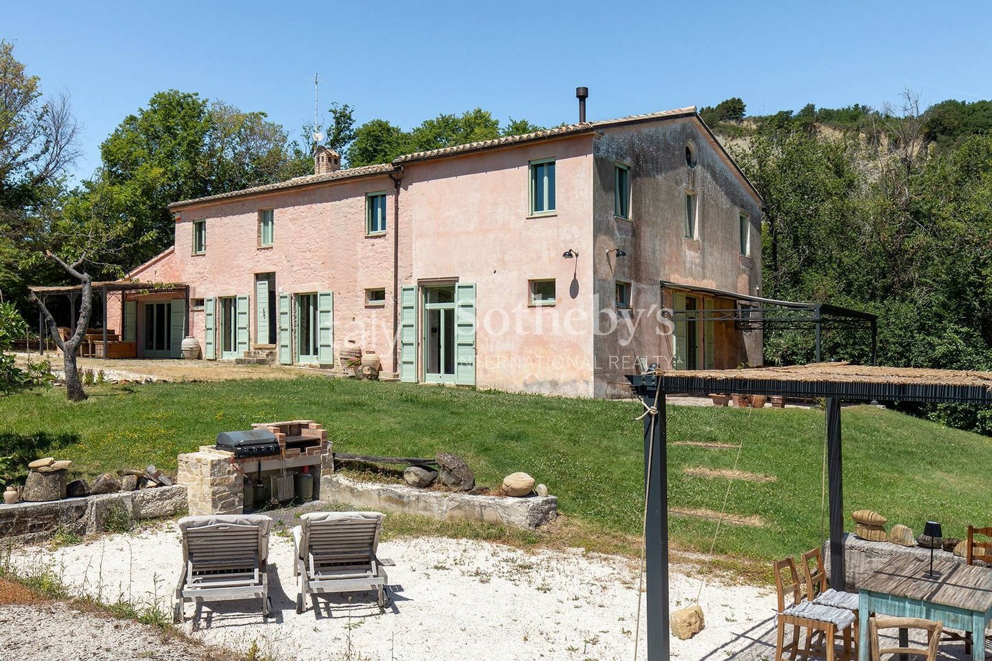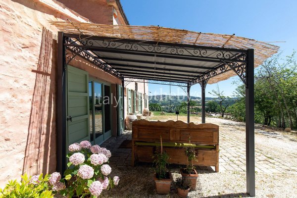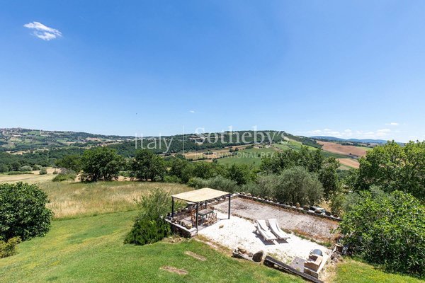 Außerhalb umfasst das Anwesen zwei Nebengebäude, die als Gartenschuppen und Lagerraum genutzt werden und in zusätzlichen Wohnraum umgewandelt werden können. Der Garten mit weitem Blick und der abgelegene Pool harmonieren mit der rustikalen Umgebung. Das fünf Hektar große Land ist größtenteils Ackerland, mit einem Hektar Wald. Das Bauernhaus liegt nur wenige Kilometer von der SS76 Autobahn, 40 km vom Flughafen Ancona, 80 km vom Flughafen Perugia und 5 km von Cupramontana entfernt.