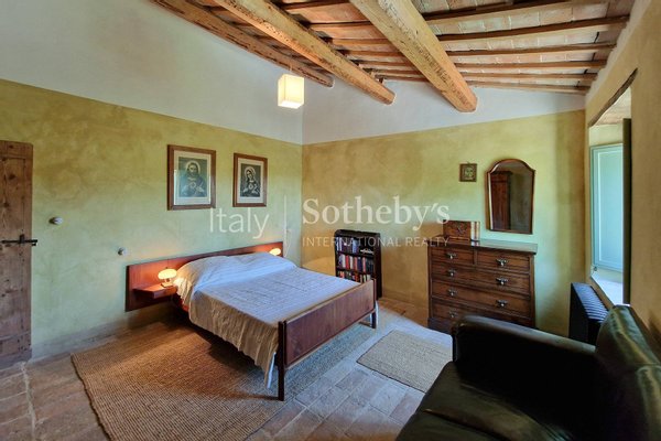 Das 400 qm große Bauernhaus ist in drei Wohnungen unterteilt, die leicht in eine einzige Wohneinheit umgewandelt werden können. Im Erdgeschoss verfügt Wohnung 1 über eine große Küche, ein Wohnzimmer mit Zugang zu einer nach Süden ausgerichteten Pergola, ein Schlafzimmer, ein Badezimmer und eine Speisekammer. Wohnung 2 bietet eine Küche mit Pergolazugang, ein Wohnzimmer, ein Schlafzimmer und ein Badezimmer. Im ersten Stock befinden sich vier Doppelzimmer, eines davon mit einem schönen Kamin, ein Wohnzimmer, zwei Badezimmer, eine Küche und ein kleiner Dachboden.