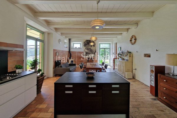 Dieses prächtige Bauernhaus in den Marken, zwischen Cupramontana und Apiro gelegen, ist ein außergewöhnliches Beispiel für eine Restaurierung, die zeitgenössisches Design und ursprüngliche Elemente kombiniert. Eingebettet in eine natürliche Umgebung