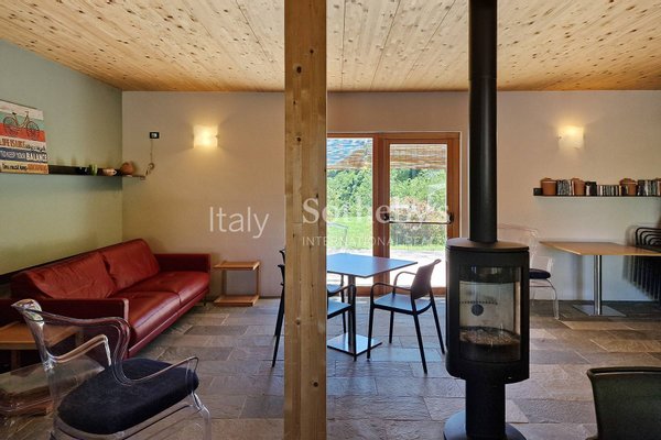Diese einzigartige Immobilie in den grünen Hügeln der Marken, in der Nähe des mittelalterlichen Dorfes Falerone, erstreckt sich über 16 Hektar Land mit Kirsch- und Olivenbäumen. Die neu erbaute Struktur, etwa 380 qm, besteht vollständig aus Holz mit einer erdbebensicheren Konstruktion, isoliert mit natürlichen Materialien und bedeckt mit lokalen Steinen, was eine Philosophie des Umweltschutzes und der Landschaftsintegration widerspiegelt. Sie umfasst fünf unabhängige Apartments, jedes mit Wohnzimmer-Küche, Badezimmer und Doppelzimmer, sowie zwei Schlafzimmer im zweiten Stock mit privaten Badezimmern und einer gemeinsamen Terrasse. Das Erdgeschoss verfügt über eine 100 qm große Veranda, einen 60 qm großen Gemeinschaftsbereich mit Lounge, zwei Badezimmern, einem zentralen Holzofen und einer professionellen Küche, die sich ideal für Veranstaltungen eignet. Das Anwesen bietet einen beheizten Salzwasserpool mit Gegenstromanlage, einen 100 qm großen Wellnessbereich mit Sauna, Türkischem Bad, Chromotherapie-Duschen und ein Solarium im Obergeschoss. Weitere Annehmlichkeiten umfassen einen Heizraum und einen Lagerraum von etwa 30 qm. Umweltfreundlich nutzt die Immobilie erneuerbare Energien für die Heizung, mit Systemen zur Regenwassersammlung, einer Klärgrube und zwei Brunnen. Perfekt für Tourismus, Agritourismus, Agri-Camping oder private Rückzugsorte bietet sie Ruhe und Privatsphäre in der Nähe der wichtigsten Dienstleistungen. Sie liegt 30 Minuten von Fermo und dem Meer entfernt und etwa eine Stunde vom Flughafen Ancona-Falconara.