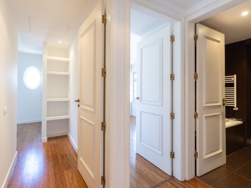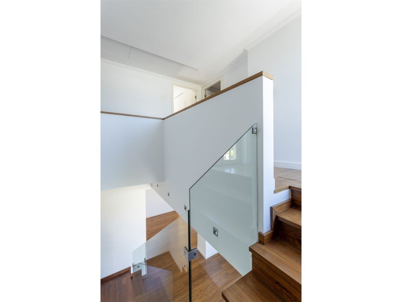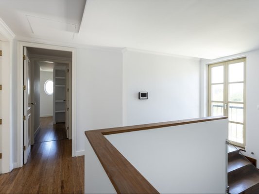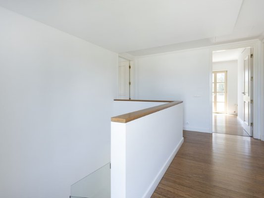 Wenn wir in den ersten Stock hinaufgehen, finden wir den Schlafzimmerflur, der ein Gefühl von Privatsphäre und Organisation vermittelt. Die 17 m² große Master-Suite bietet einen komfortablen Raum. Die zweite Suite verfügt über eine großzügige Fläche von 24 m² und bietet Zugang zu einem großen Balkon mit Blick auf den Garten. Es gibt auch zwei weitere Schlafzimmer, eines mit 17 m² nach Süden und das andere mit 12 m² nach Nordwesten, die sich beide ein Badezimmer teilen.