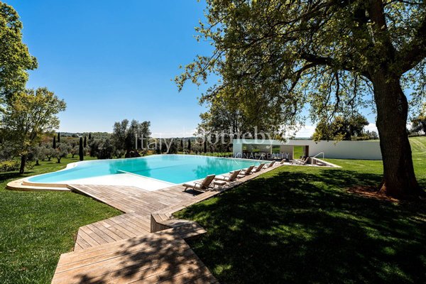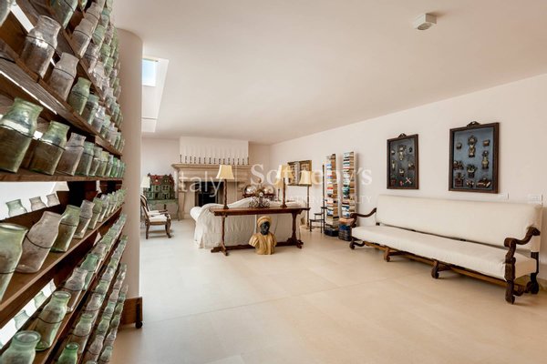 Villa Venere is ideal for family stays or gatherings with friends, offering a tranquil environment away from the urban frenzy. Comprising three architectural bodies connected by stairs and internal corridors, the villa can accommodate up to 20 people in 9 bedrooms. It features large common areas such as three kitchens, a dining area, a large living area, a fireplace room, and a TV room.