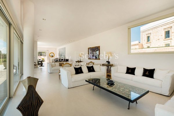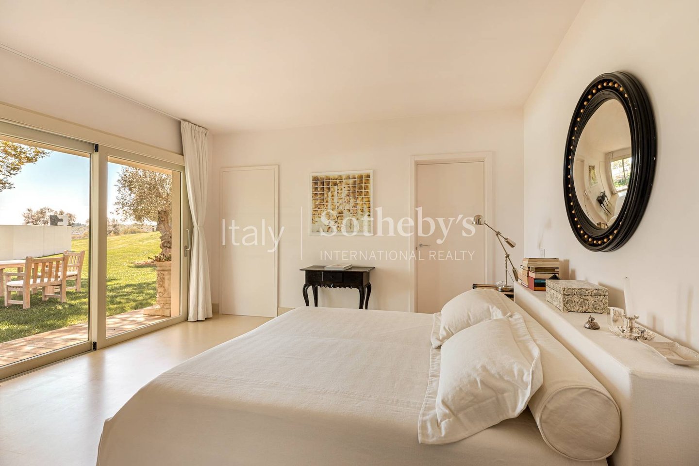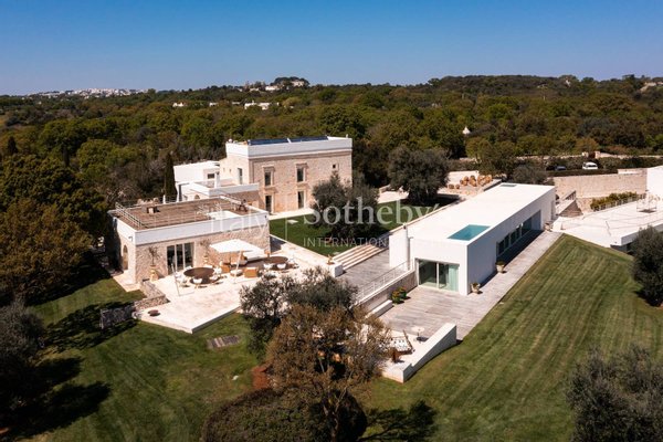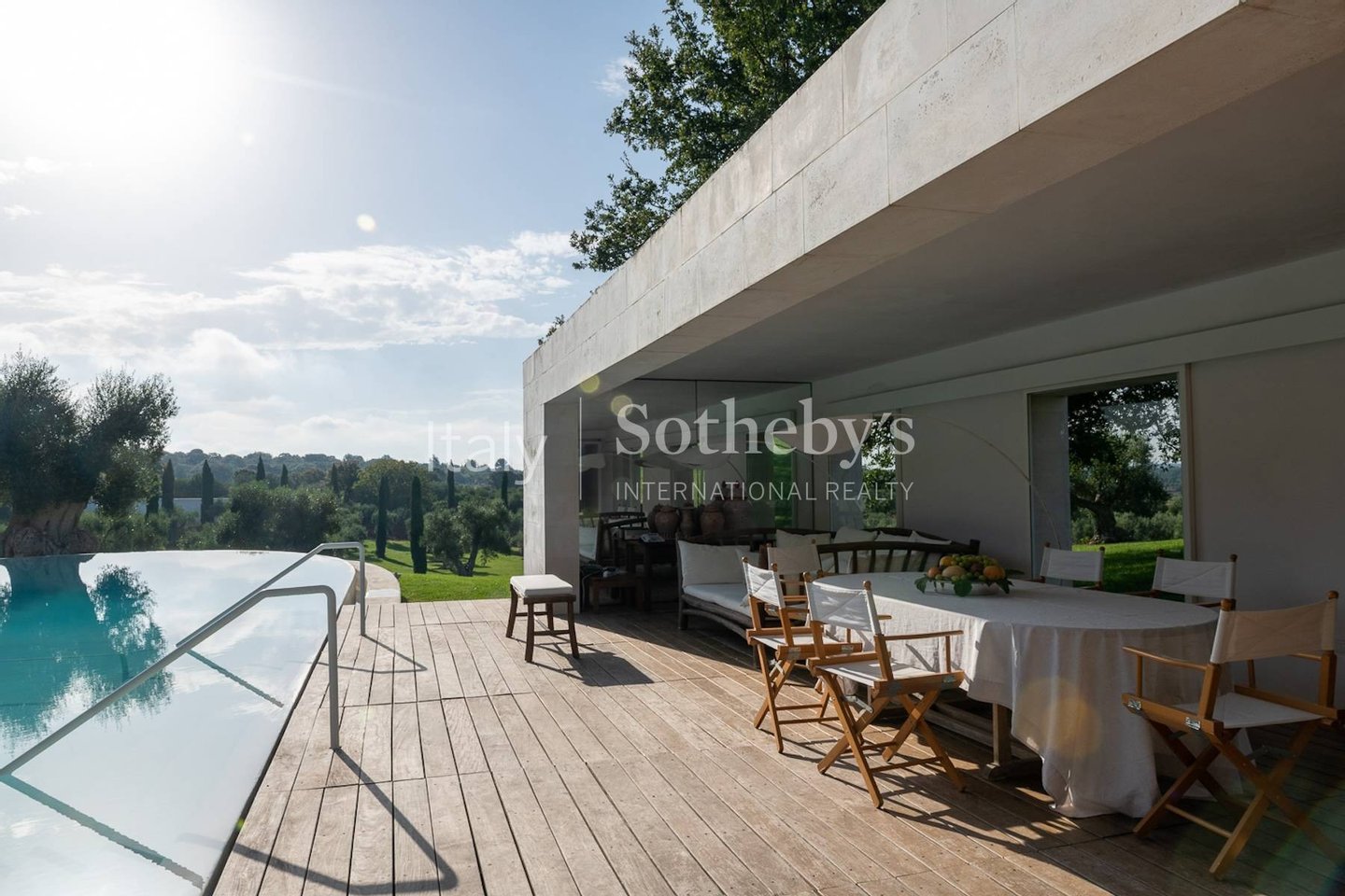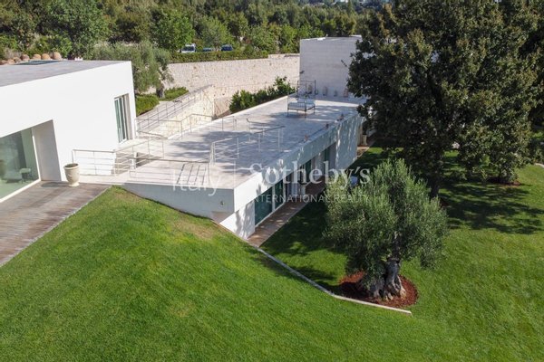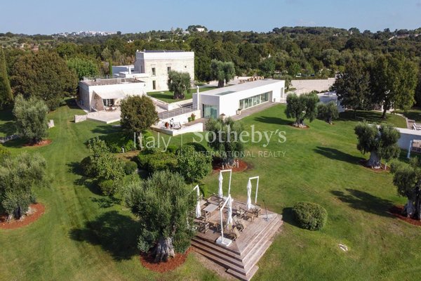 ...mehr lesenVilla Venere, located between Cisternino and Ostuni, in the heart of the Itria Valley, is a unique architectural masterpiece that harmoniously blends into the Apulian landscape. Surrounded by gardens and centuries-old olive trees, it combines the typical rural scenery with a distinctive architectural style. The modern exteriors conceal spacious and detailed interiors, designed to enhance every corner.