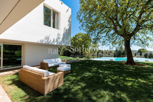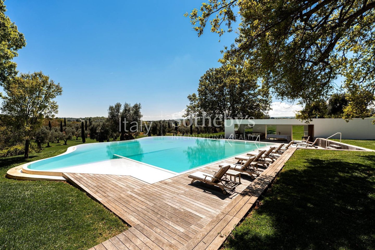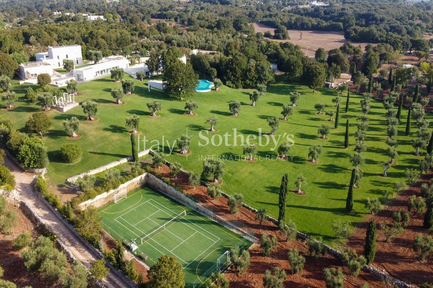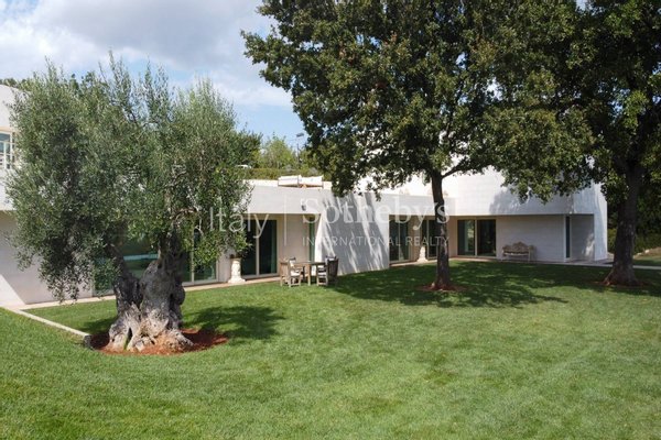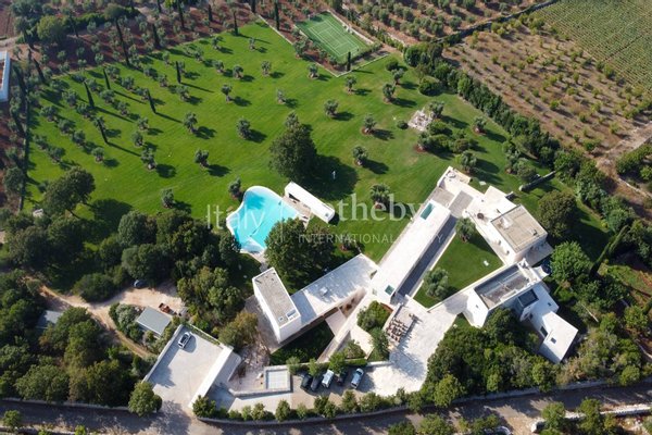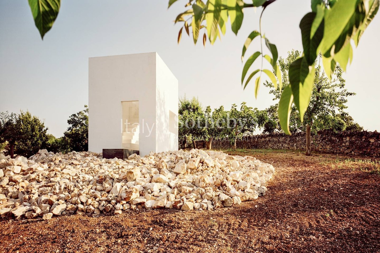 ...mehr lesenVilla Venere, located between Cisternino and Ostuni, in the heart of the Itria Valley, is a unique architectural masterpiece that harmoniously blends into the Apulian landscape. Surrounded by gardens and centuries-old olive trees, it combines the typical rural scenery with a distinctive architectural style. The modern exteriors conceal spacious and detailed interiors, designed to enhance every corner.