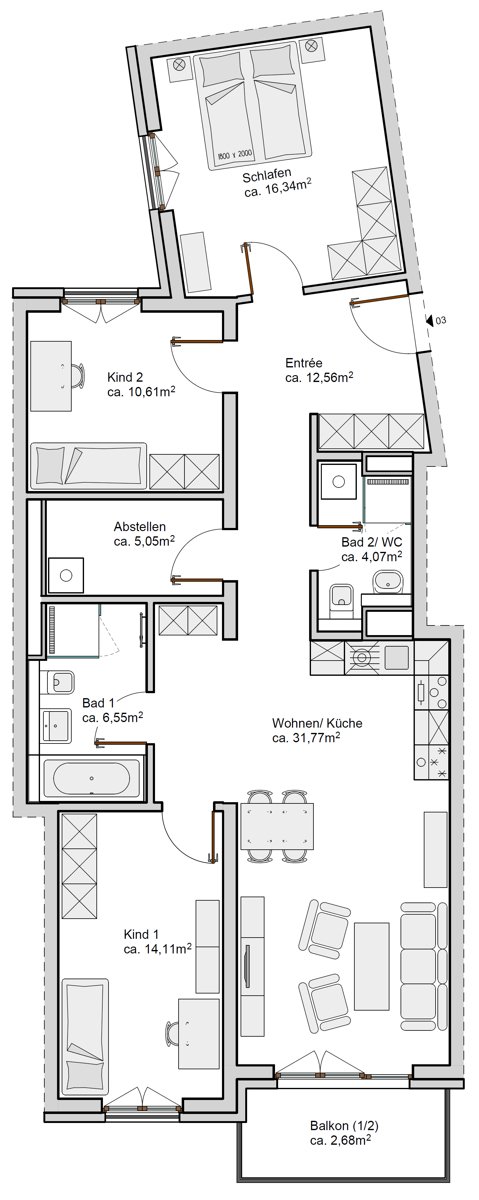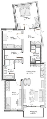 Nachfrageorientierte Grundrisse, eine gehobene Ausstattung sowie lichtdurchflutete Fensterfronten schaffen für viele individuelle Lebensmodelle ein wertiges Zuhause. Von der 1-Zimmer-Wohnung für Singles über die 2- bis 3-Raum-Wohnungen für junge Paare oder Senioren bis hin zu 5-Zimmer-Wohnungen für Familien - das RIUS CARRÉ ist der perfekte Ort für jeden Lebensabschnitt.