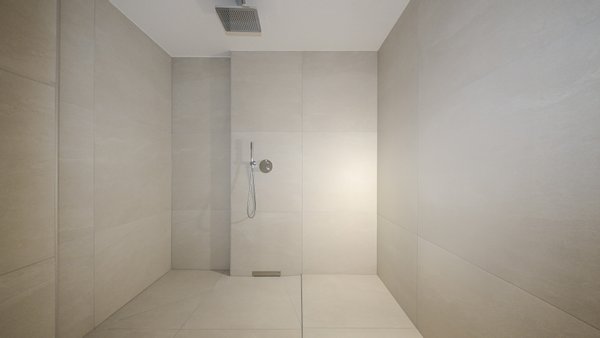 Alle Wohn- und Schlafräume sind mit Eichendielen verlegt, die Badezimmer mit besonders großen, zeitlos eleganten Fliesen und Armaturen ausgestattet.