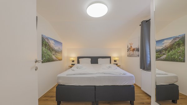 In den Wohn- und Schlafräumen wurden Eichendielenböden und in den Bädern sowie im Vorraum Fliesenböden verlegt.