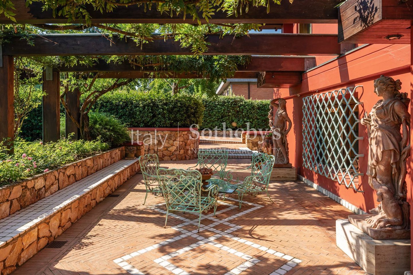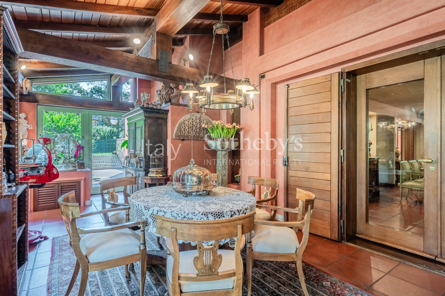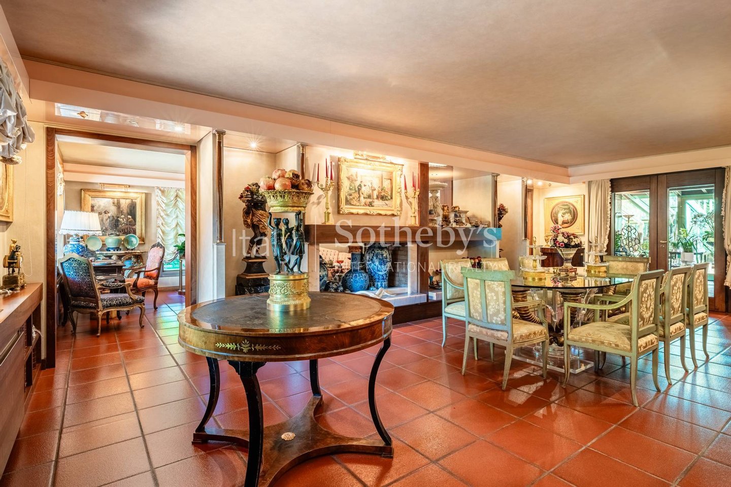 Die Außenbereiche umfassen einen großen Weinkeller im Untergeschoss, einen Anbau mit Abstellraum und Garage sowie einen eingezäunten Garten, der mit einem großen Pool und einem Solarium geschmückt ist. Eine Veranda für Abendessen im Freien verwandelt die Abende in magische Momente unter dem Sternenhimmel. Zum Anwesen gehört auch ein an den Garten angrenzendes Grundstück mit einer Gesamtfläche von 16.000 qm.