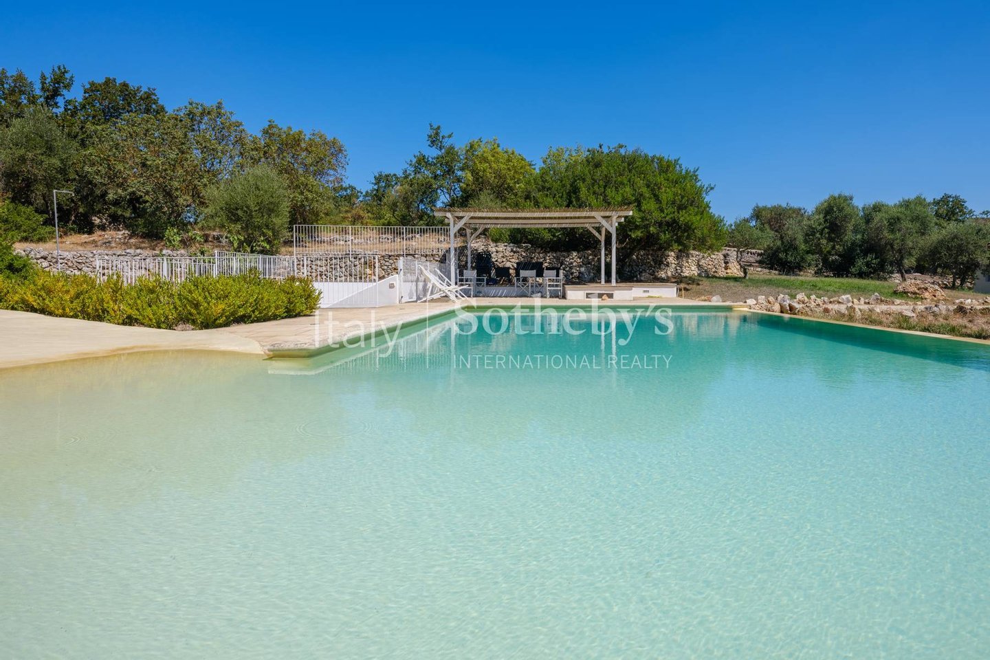 Die zweite Lamia umfasst zwei Doppelzimmer mit Badezimmer. Die dritte Lamia, unabhängig, besteht aus einem Doppelzimmer und einem Badezimmer. Der Außenbereich wird durch einen Holzofen und einen Grill ergänzt. Der große Infinity-Pool ist in den Felsen eingelassen, der begradigt wurde, um eine kleine Sicherheitszone für Kinder zu schaffen. Diese Immobilie bietet eine perfekte Balance zwischen Eleganz, Komfort und Tradition und stellt somit eine einzigartige Gelegenheit dar, den Charme Apuliens in einem exklusiven Umfeld zu erleben.