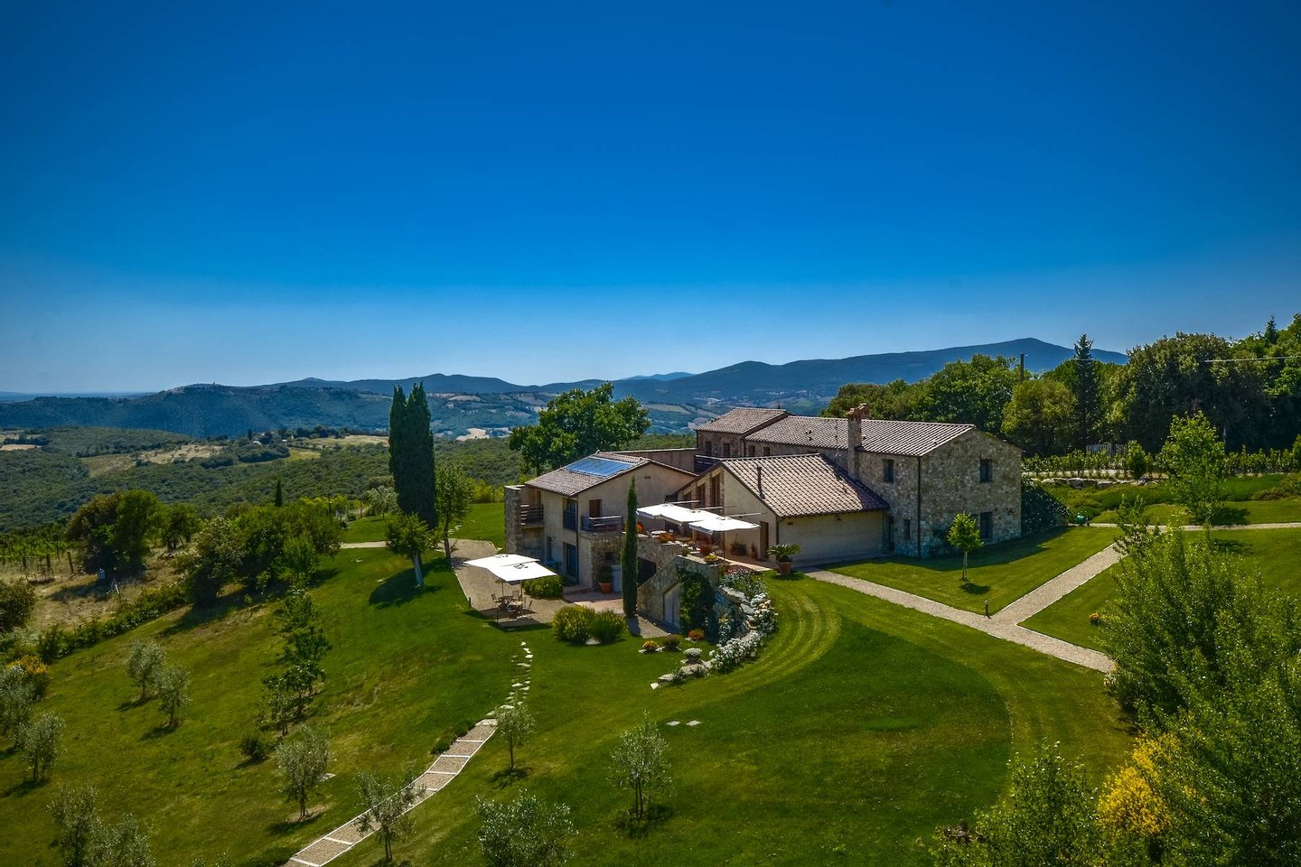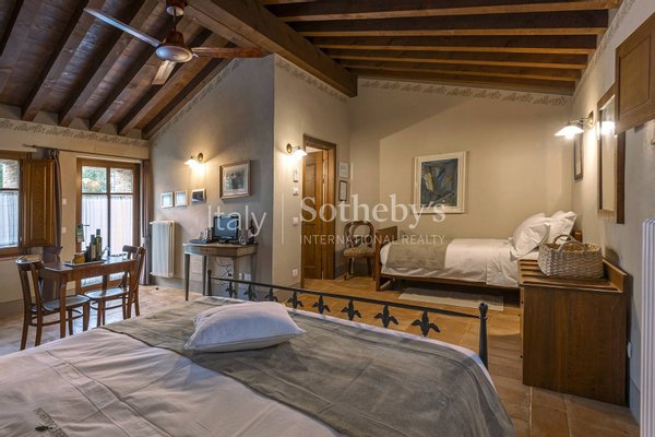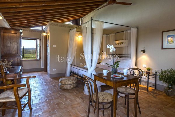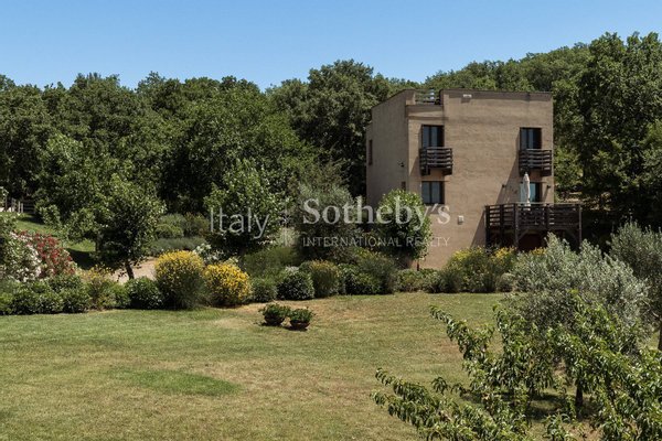 Im Herzen der eindrucksvollen Hügel des Val D'Orcia, umgeben von den Weinbergen von Montecucco, befindet sich eine prestigeträchtige Residenz, die derzeit als Touristenhotel geführt wird. D