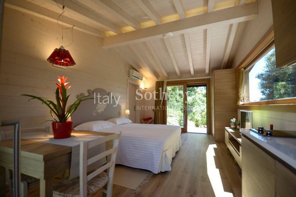 Die Zimmer sind alle einzigartig und besonders, zwischen 32 und 35 qm groß, einige von ihnen auch mit einer Kochnische ausgestattet; alle mit unabhängigem Zugang, einige im ersten Stock mit Außentreppe, andere haben Zugang vom Innenhof, der zu einer schönen Terrasse führt, auf der Sie speisen oder sich unterhalten können, während Sie die atemberaubende Aussicht genießen, die die hügelige Lage von jedem Punkt aus bietet der Komplex. Zur Vervollständigung des Gebäudes sorgen eine voll ausgestattete Profiküche, ein Restaurant mit Kamin und ein Ruheraum zum Lesen oder Fernsehen, die maximalen Komfort garantieren.