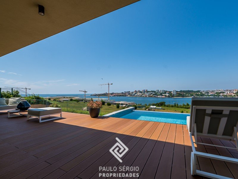 Entdecken Sie die Essenz von Luxus und Raffinesse in dieser exklusiven Villa, die sich in der prestigeträchtigen privaten Wohnanlage 'Quinta Marques Gomes' befindet. In der Nähe des Jachthafens von Afurada gelegen, bietet diese Residenz einen unvergleichlichen Blick auf den Fluss, das Meer und die Stadt Porto und bietet eine atemberaubende Landschaft und eine unvergleichliche Lebensqualität.