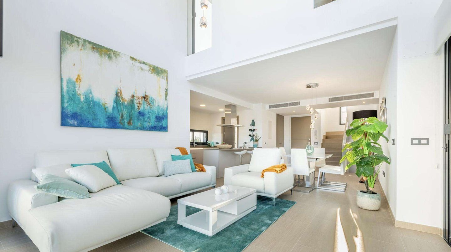 Sie verfügt über 3 Schlafzimmer und 3 Bäder, einen Hauswirtschaftsraum, Ankleideräume und Abstellraum, Garten mit automatischer Tropfbewässerung, Swimmingpool, Pkw-Stellplatz und Sonnenterrasse.