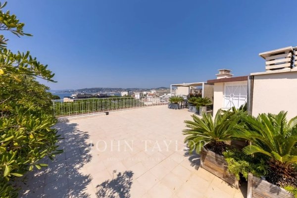 Außergewöhnliche Wohnung im Pinienwald von Juan Les Pins mit Panoramablick auf das Meer.