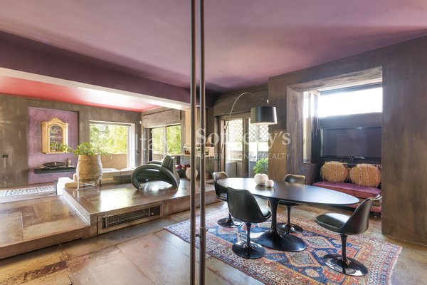Elegant renoviert mit höchster Aufmerksamkeit auf zeitgenössisches Design, stellt diese Immobilie, nur wenige Schritte vom historischen Piazza dei Giuochi Delfici entfernt, eine perfekte Kombination aus Eleganz und Funktionalität dar. Der weitläufige offene Salon, als Loft konzipiert, zeichnet sich durch die innovative Nutzung von Plattformen und Treppen aus Eisen aus und ist mit Eichenholz-Oberflächen und strategisch positionierten Lichtpunkten versehen. Der Wohnbereich öffnet sich zu einer Design-Küche und einem Essbereich, der durch einen Mosaikboden aufgewertet wird. Das diskrete und raffinierte Gäste-WC ist hinter einer Holztafel verborgen.