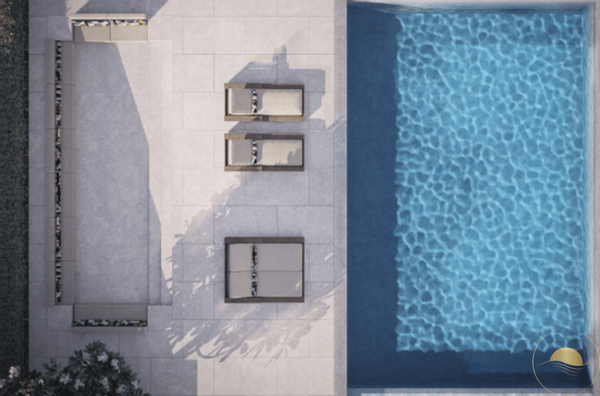 - Panoramafenster und große Terrassen mit eingebautem Sitzbereich