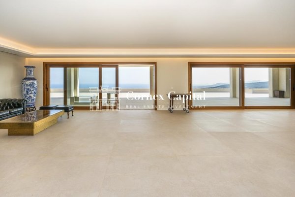 Vom Haupteingang, der über eine Treppe erreichbar ist, oder über einen großen privaten Aufzug mit einer Kapazität für 6 Personen, der die drei Etagen miteinander verbindet, gelangen wir in eine majestätische Master-Suite mit Terrasse und Meerblick, 40 Quadratmeter, mit einem 28 m² großen Wohnzimmer, einem 24 m² großen Ankleidezimmer und einem majestätischen privaten Badezimmer mit Whirlpool. und separate WC-Bereiche für zwei Personen