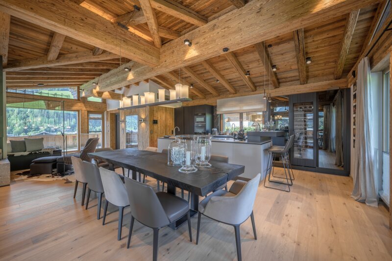 Gedeckte Farben in der Innenraumgestaltung ziehen sich als durchdachtes Konzept durch die Ebenen und lassen somit Freiräume für die persönliche Note, die ein neuer Eigentümer einbringen kann. Die sorgfältig ausgewählten Materialen sind äußerst hochwertig und wurden von heimischen Handwerksbetrieben in Perfektion verarbeitet. Es wurde nichts dem Zufall überlassen, sondern mit viel Liebe zum Detail geschaffen für das Beisammensein mit Familie und Freunden.