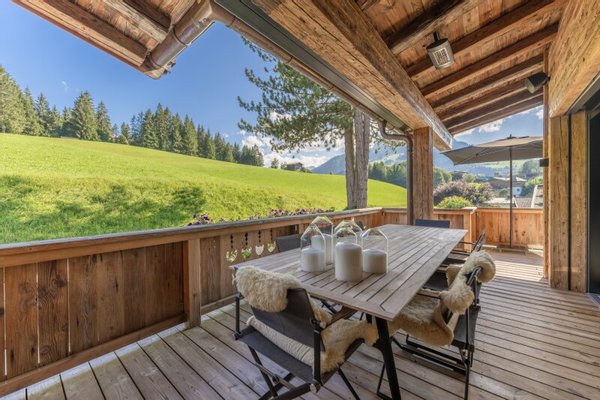 In sanft erhöhter Lage befindet sich dieses fantastische Chalet. Sonne, Ruhe und ein schöner Ausblick über saftige Wiesen hinweg zur umliegenden Bergwelt prägen diesen schönen Platz. Von der Schiabfahrt kommt man bis zur Haustüre, der Ortskern ist