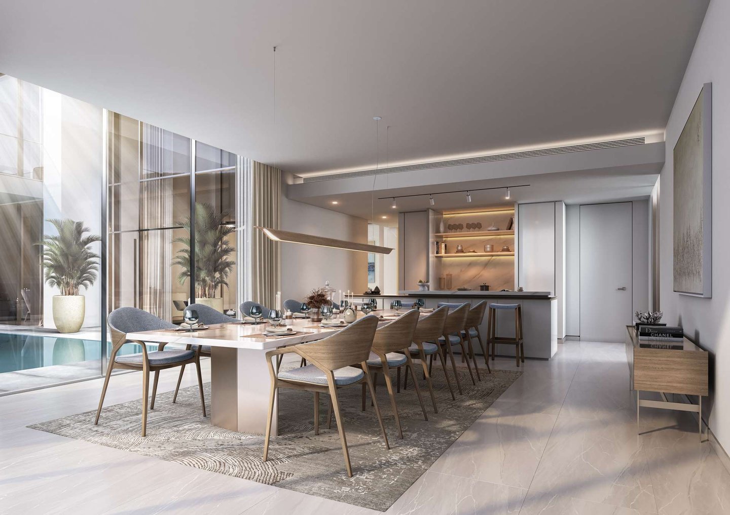 Treten Sie ein und lassen Sie sich von der großzügigen Raumaufteilung und der hochwertigen Ausstattung beeindrucken. Die offene Wohnküche lädt zum gemütlichen Beisammensein ein, während Sie durch die bodentiefen Fenster den Blick auf das ruhige Wasser genießen können.