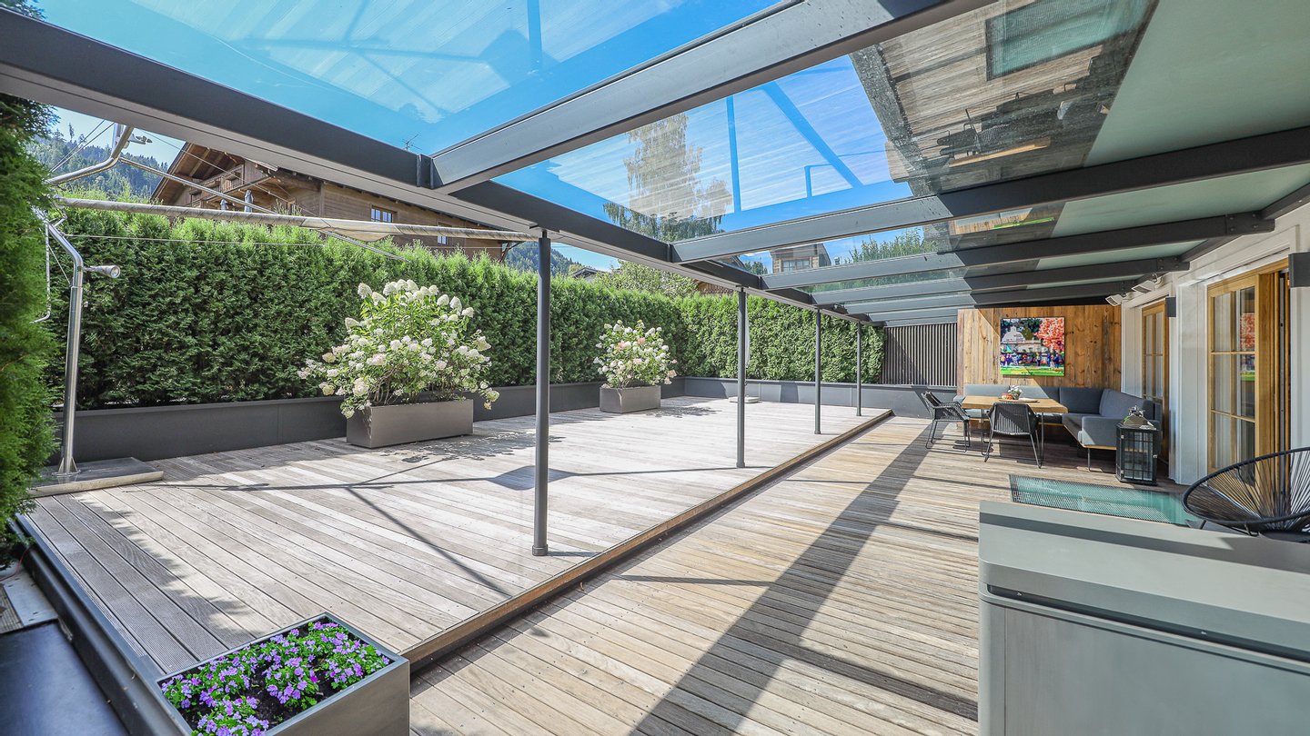 Schon die Lage ist bestechend, denn in nur 4 Fußminuten ist man im Zentrum von Kitzbühel und ebenso beim Hahnenkammlift, der nächste Golfplatz ist nur 3 Fußminuten entfernt.
