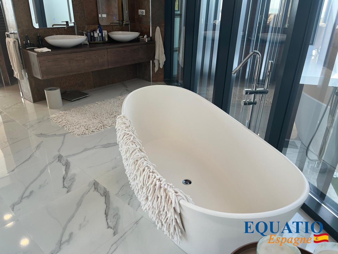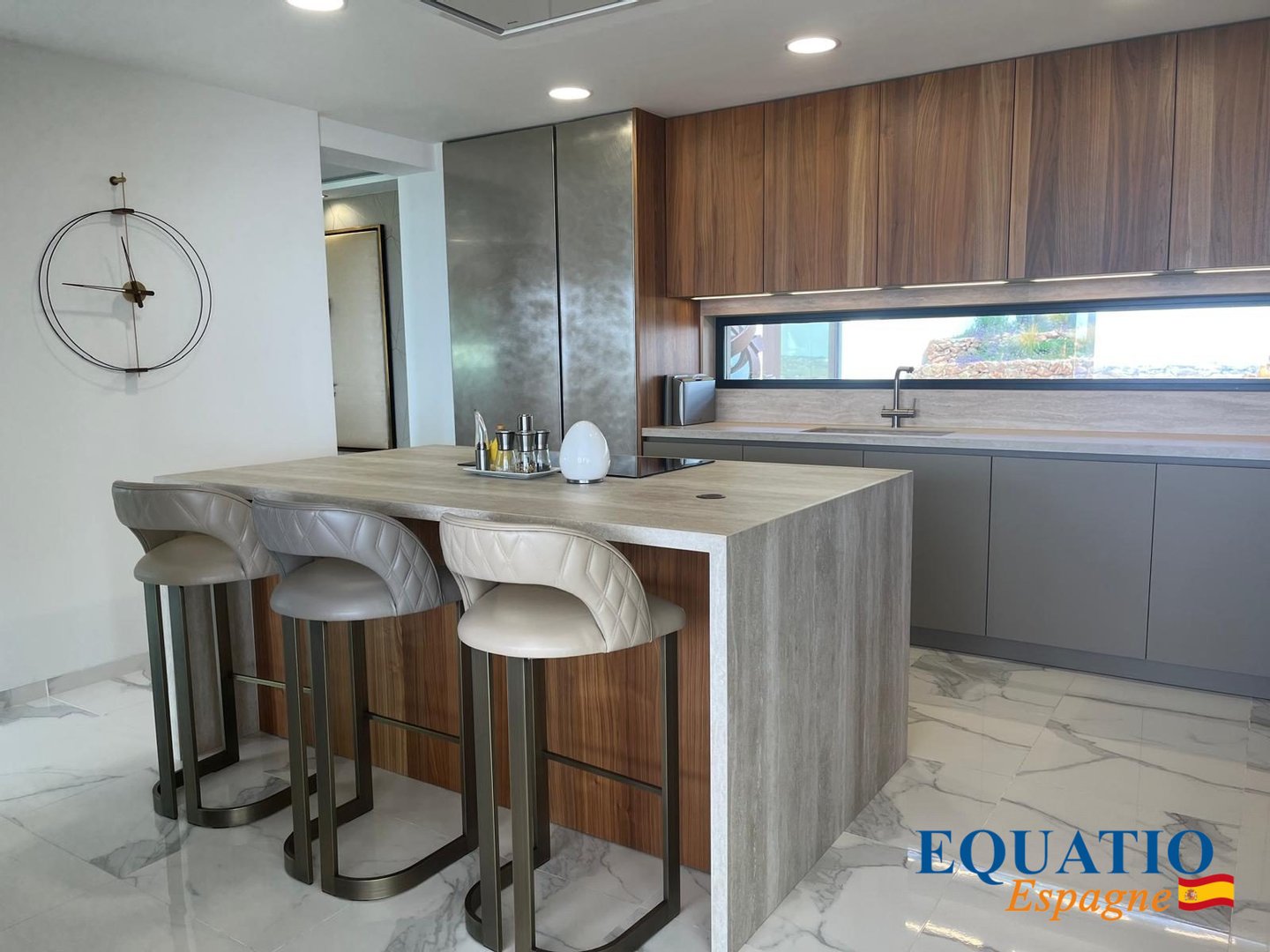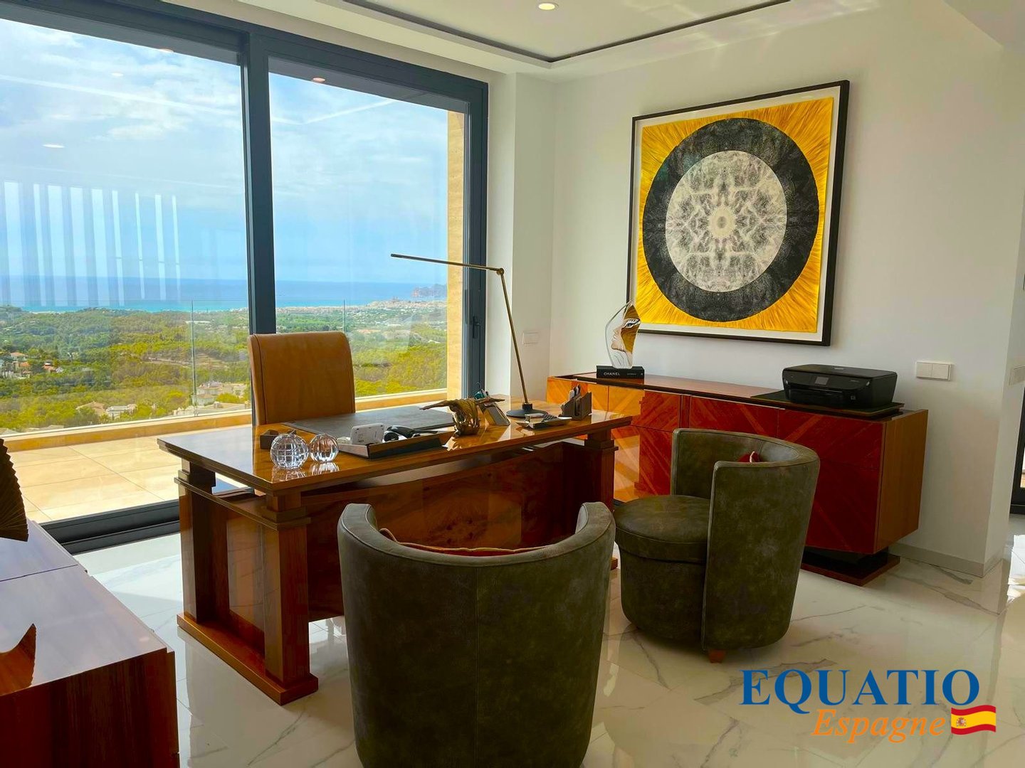 5 Large comfortable bedrooms with dressing room, 5 bathrooms with dressing room, 1 'visitor' bathroom, 1 office, a very large open kitchen fully fitted and equipped with high-end elements of the Mièle Brand, including a huge American fridge, . . . overlooking an IMMNENSE Living - Dining Room with Fireplace.