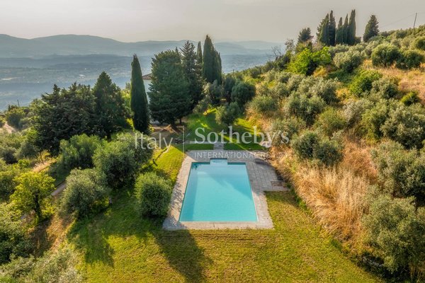 Ein Anwesen, das seine Ursprünge im Jahr 1648 hat und kürzlich fachmännisch renoviert wurde, bietet modernes Design und Technologien, um sowohl Charme als auch Komfort zu gewährleisten. Etwa 40 Minuten vom Zentrum von Florenz entfernt, befindet sich das Anwesen in einer panoramischen Lage und blickt auf die Hügel des Chianti sowie das Arno-Tal, in der Mitte zwischen Arezzo und Siena. Umgeben von etwa 6000 m² terrassiertem Land garantiert es Privatsphäre, ist jedoch nur 10 Minuten vom Ortszentrum entfernt, wo alle Annehmlichkeiten zu finden sind. Auf 560 Metern über dem Meeresspiegel gelegen, zeigt es nach Süden, mit Obstbäumen und einem Olivenhain, und ist im Norden durch den Prato Magno, den Berg des Val d'Arno, geschützt.