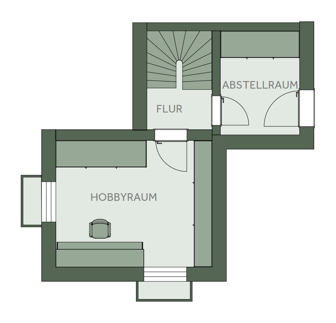 Ein besonderes Highlight ist der direkt über eine interne Treppe erreichbare, großzügige Hobbyraum im Untergeschoss. Zwei große Fenster sorgen hier für viel Tageslicht.