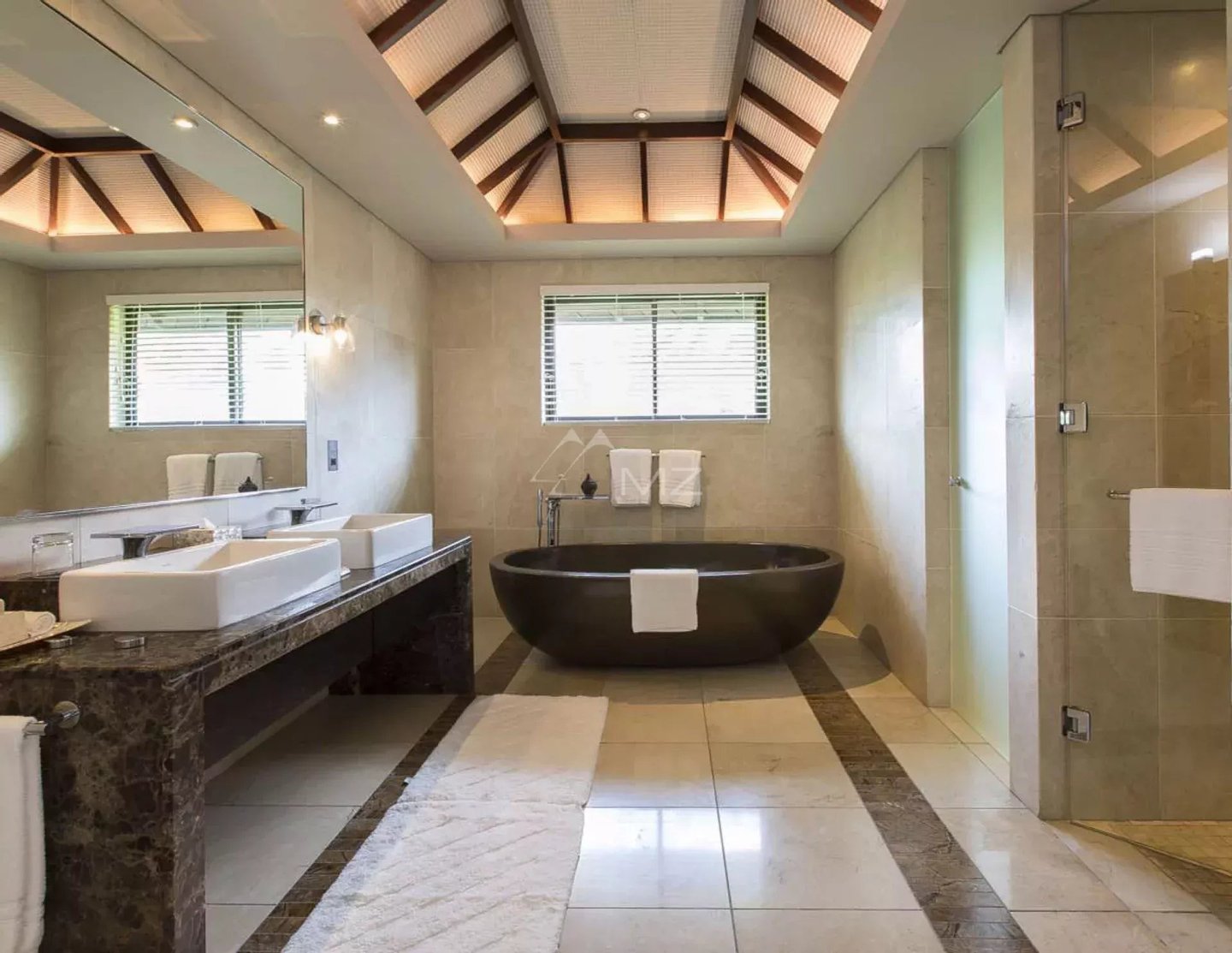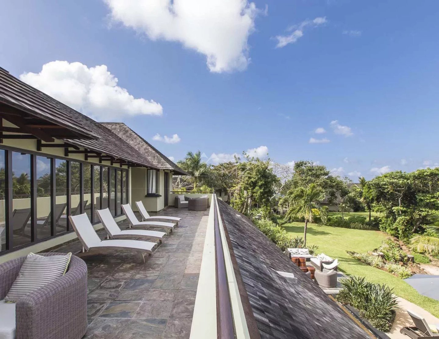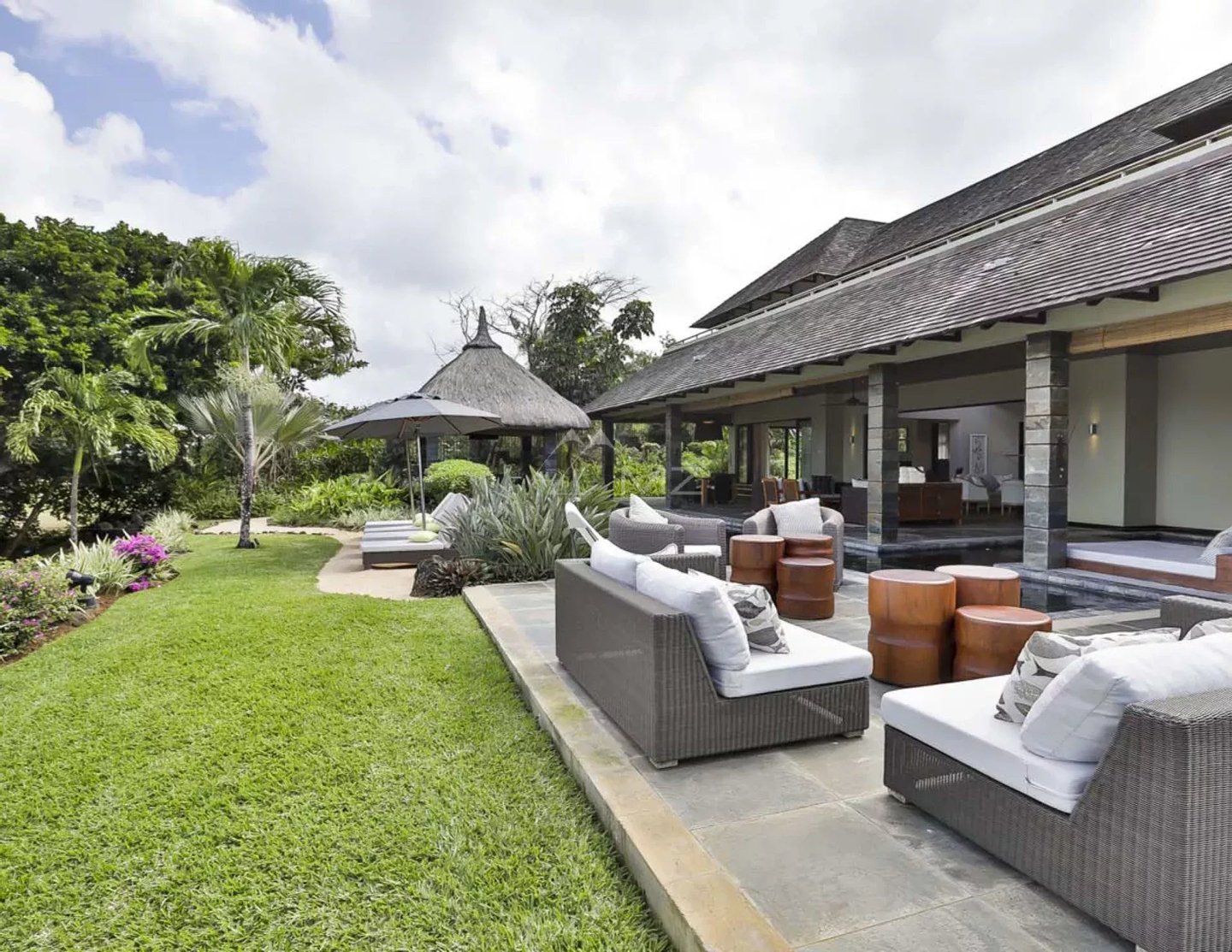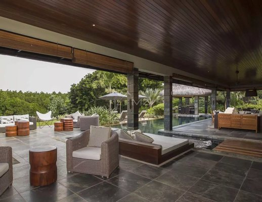 Diese elegante 630 m² große Villa mit einem schicken tropischen Stil, das perfekt in die reife Umgebung integriert ist, bietet 4 Schlafzimmer in Suite auf einem großen Grundstück von 2619 m².
