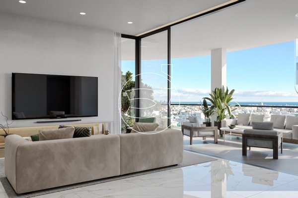 Die Bewohner genießen einen atemberaubenden Blick auf das Meer und die üppigen Blumenbeete, die sich über 17 m² erstrecken und die Schönheit und das Ambiente der Wohnung unterstreichen.