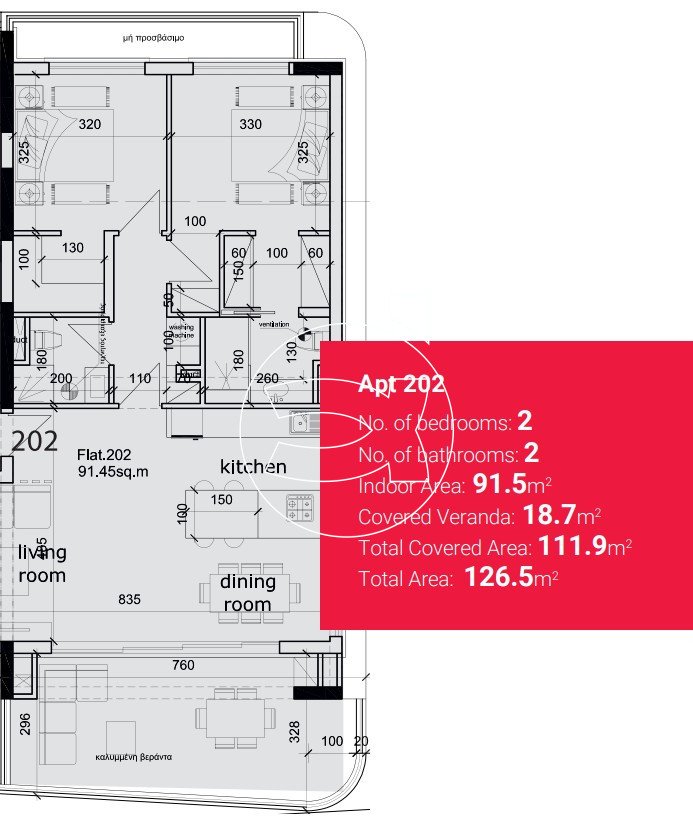 Es bietet sechs elegant gestaltete 2-Schlafzimmer-Wohnungen und ein geräumiges 3-Schlafzimmer-Penthouse, die alle über Balkone mit atemberaubendem Meerblick verfügen.